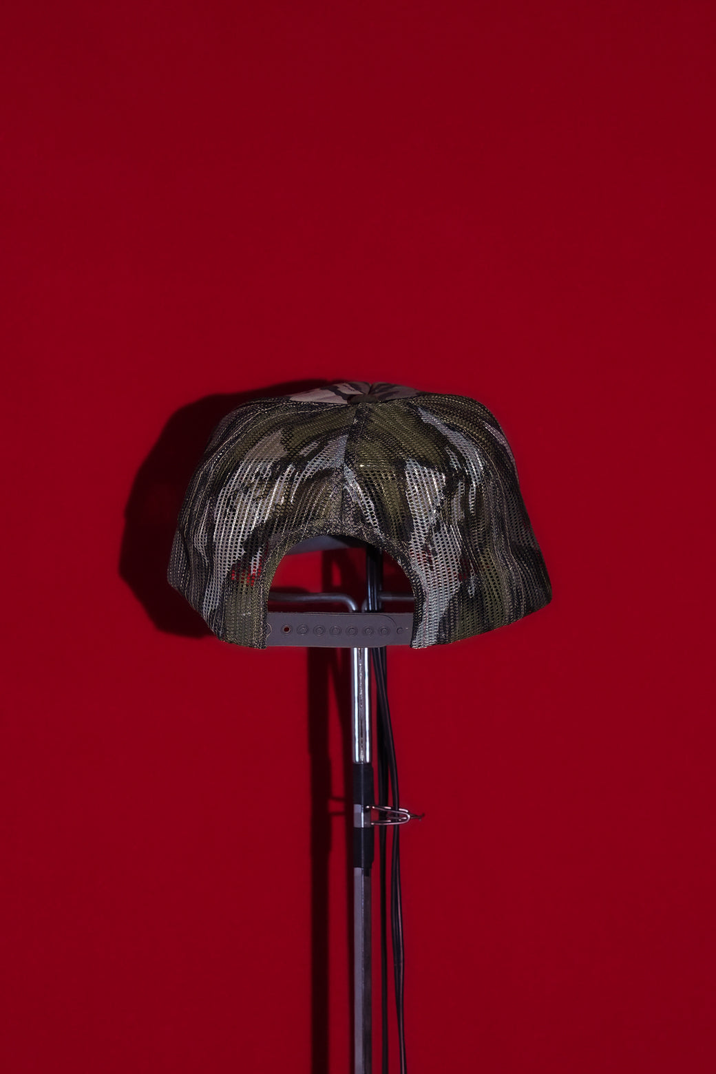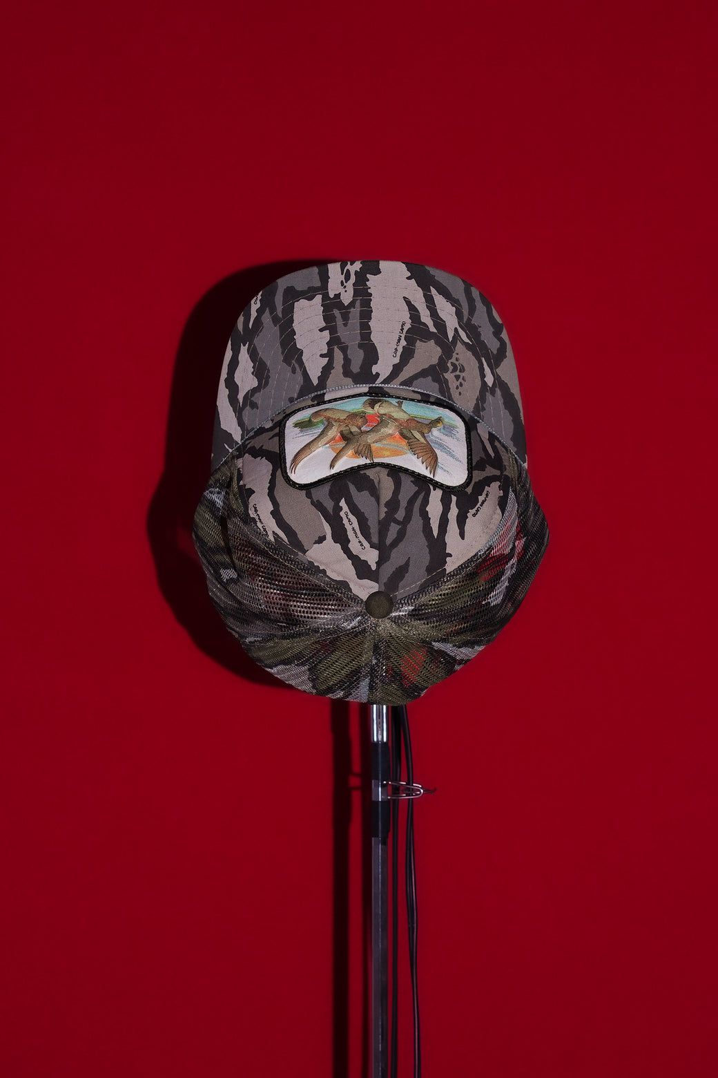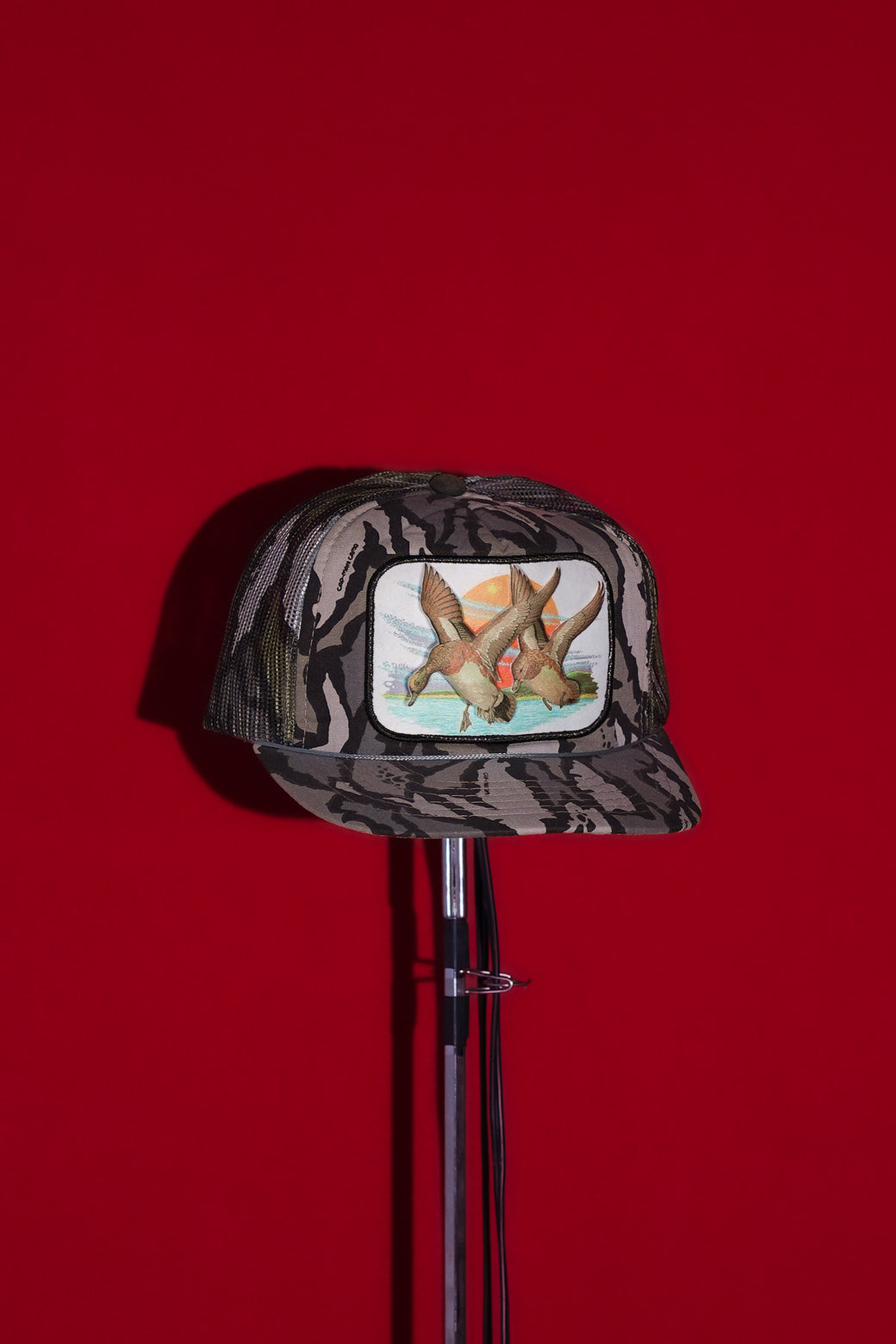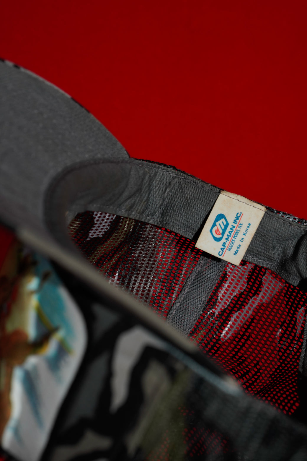 1990年代のタイガーストライプカモのハンティングキャップ。ボディはCAP-MAN社製で、アジャスターはスナップバック。経年による適切な風合いを伴った良好なコンディション。