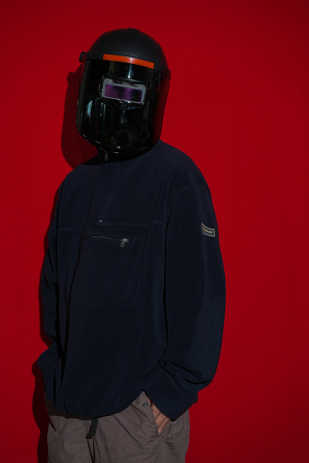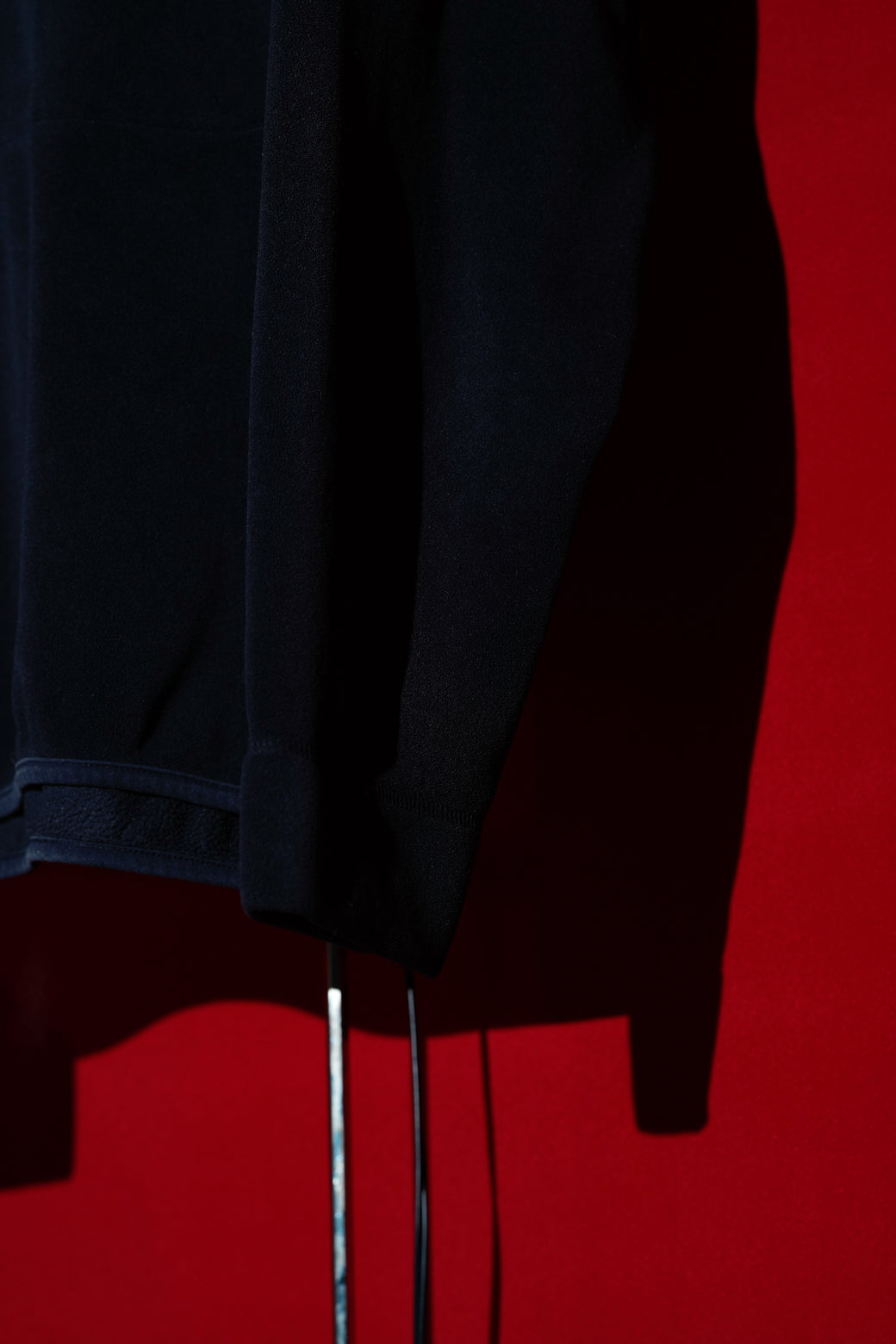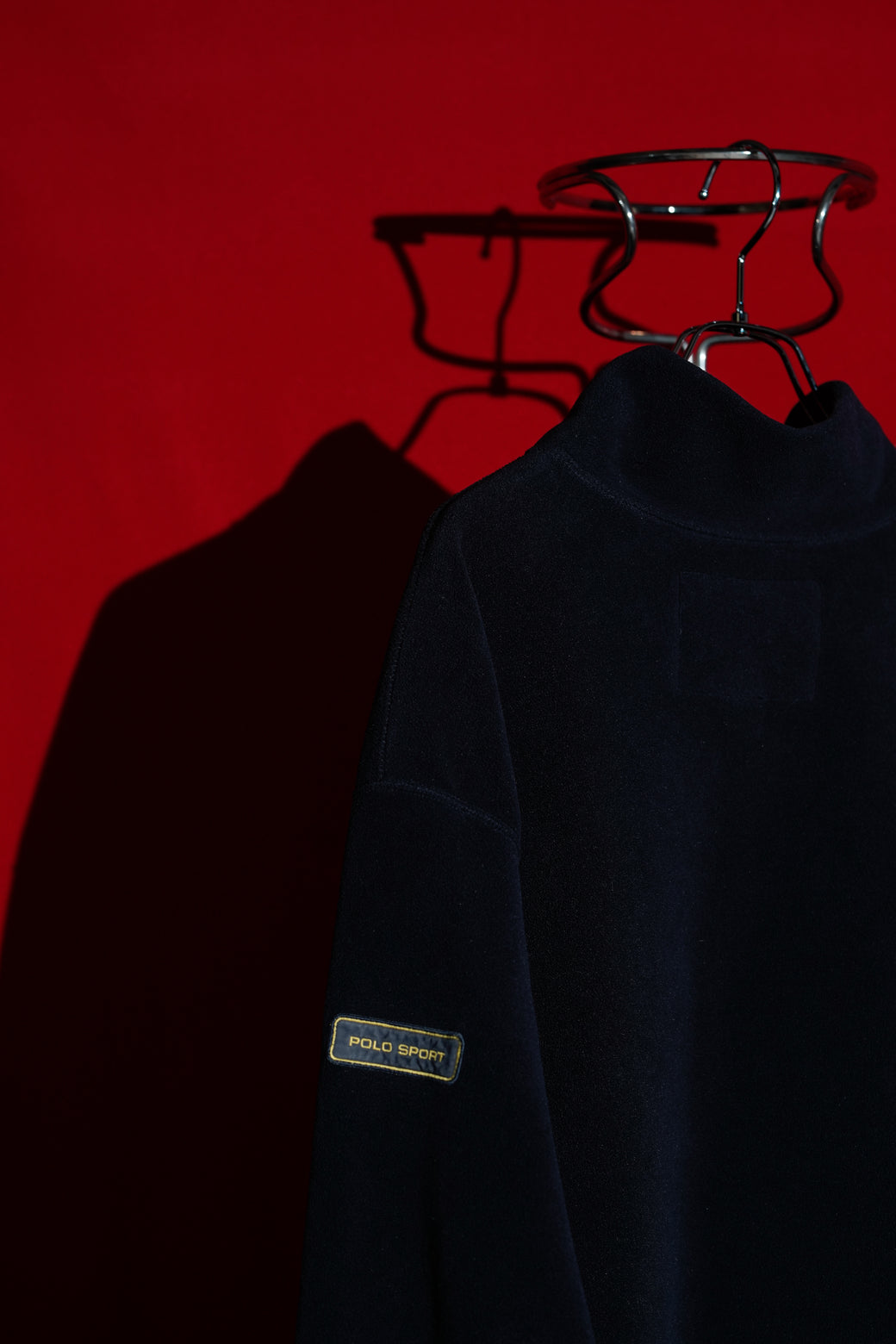 1990年代後期の「POLO SPORT」のプルオーバーフリース。ボディにハーフジップ仕様で胸元にジップポケット、腕部にはY2Kらしいカラーリングのパッチ付き。ボディカラーはダークネイビーで、生産はエルサルバドル製。経年による適切な風合いを伴った良好なコンディション。