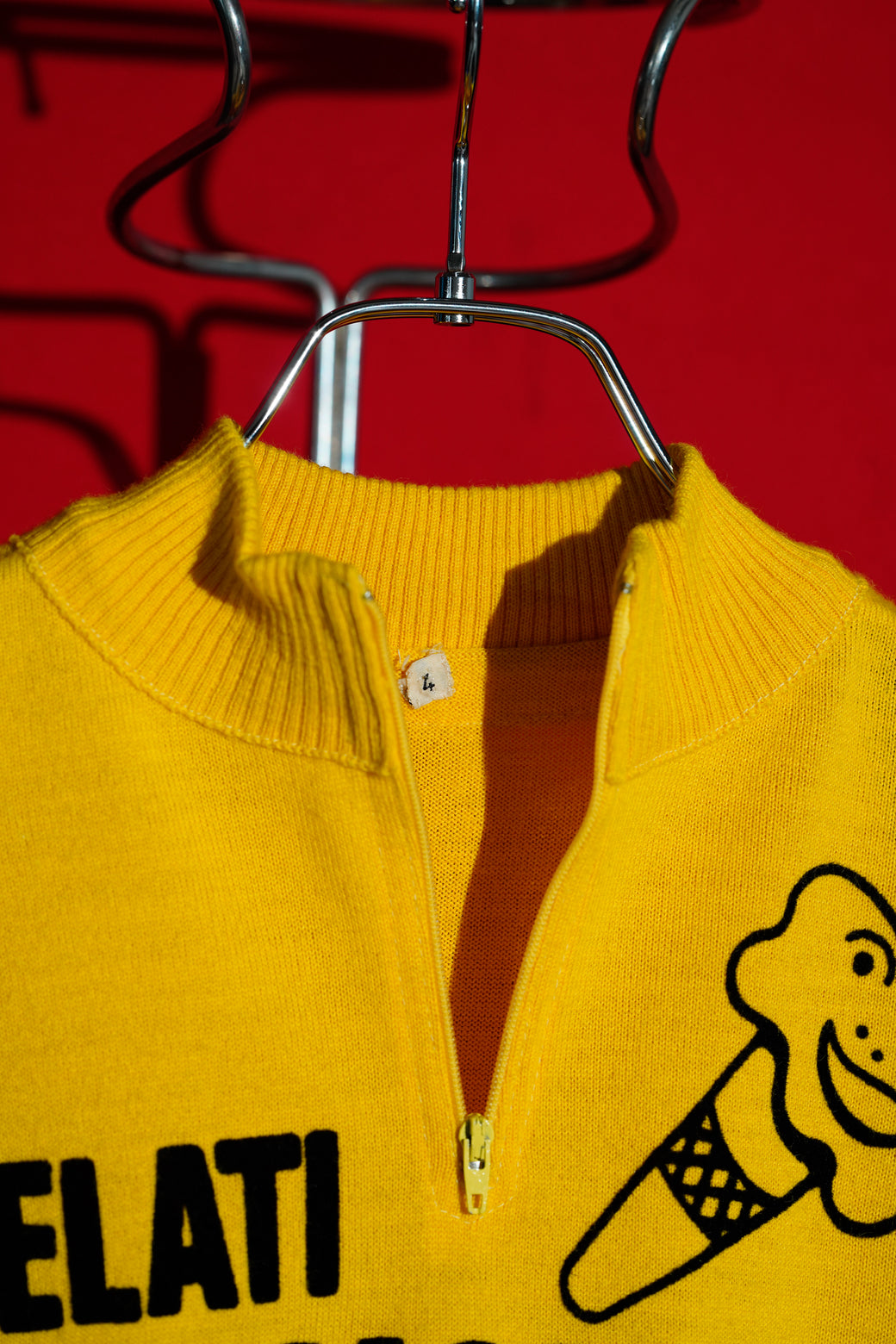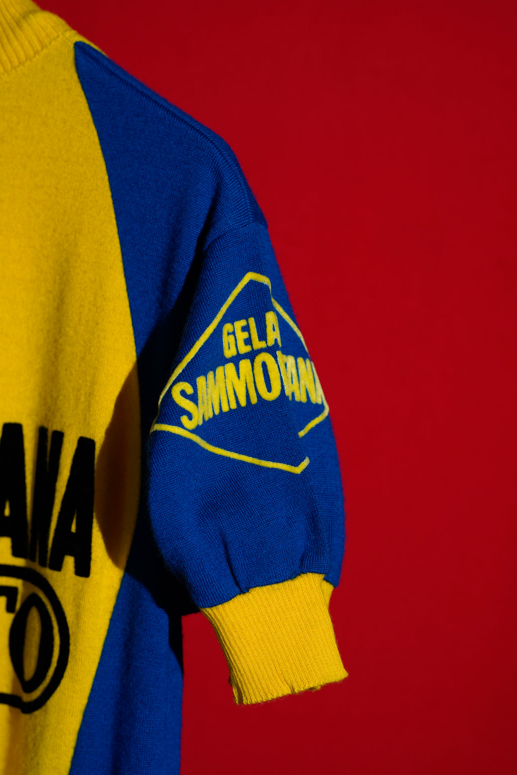 グラフィックはスポンサードしていたアイスクリームブランド"Gelati Sammontana”。胸部と背面部のグラフィックはフェルトプリントで施されています。ボディは"CORIMA"社製でMADE IN ITALY。年代と競技背景をとらえても、かなり良好なコンディション。