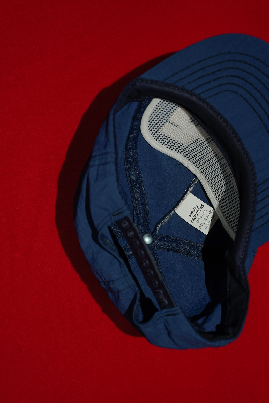 Nylon cap from the 1980s. The body is manufactured by APPAREL PROMOTIONS and is made in the USA. Features embroidered company logo and snapback adjustable closure. It maintains good condition with an appropriate aged patina.