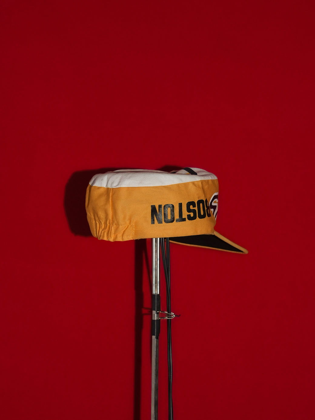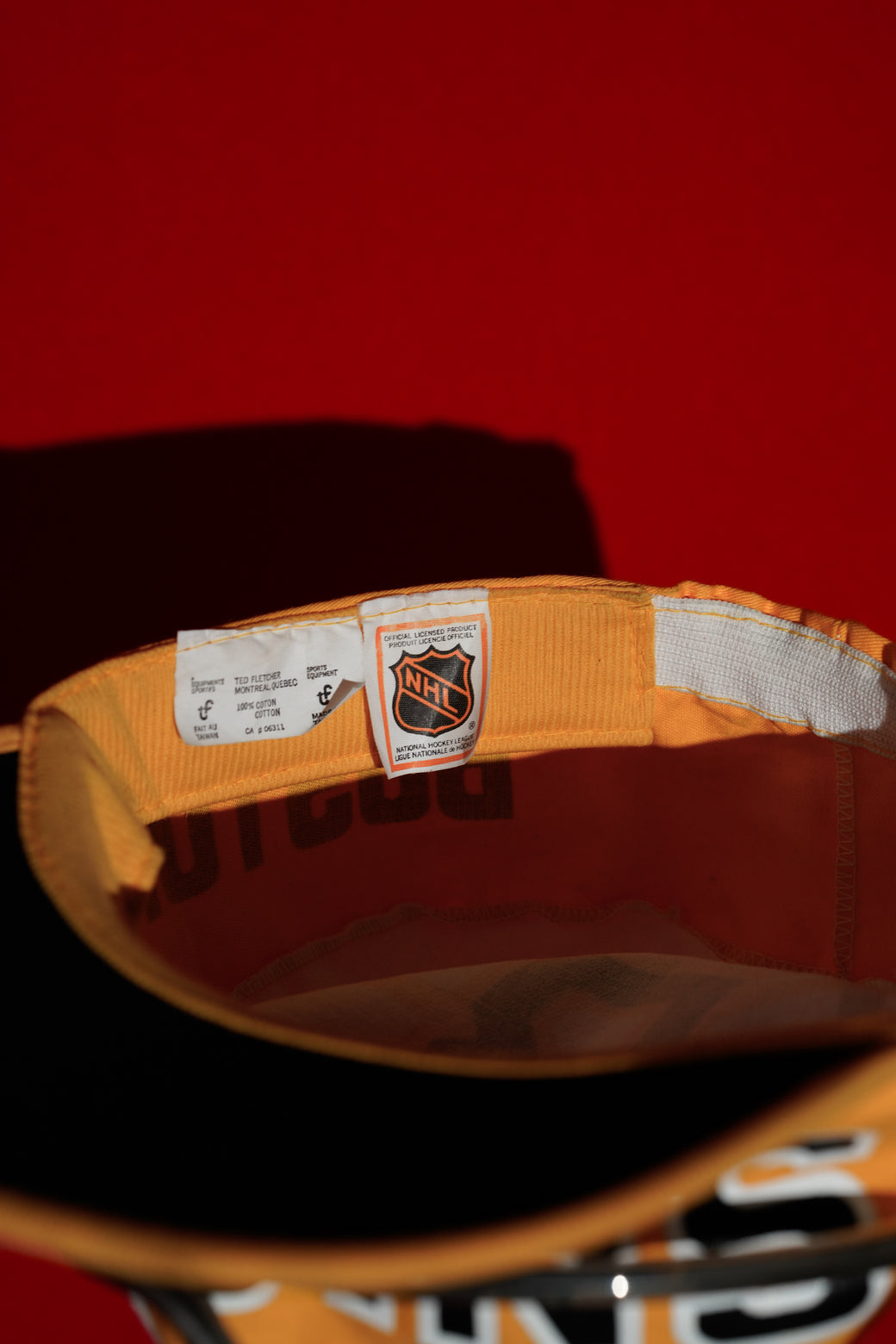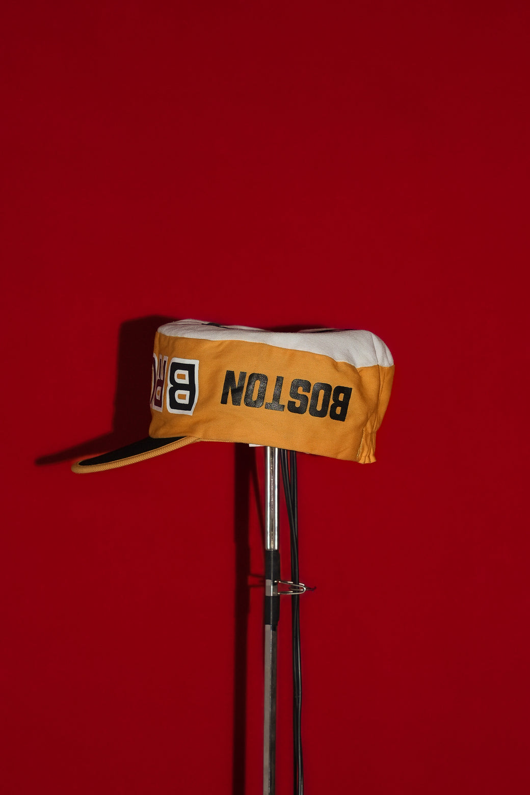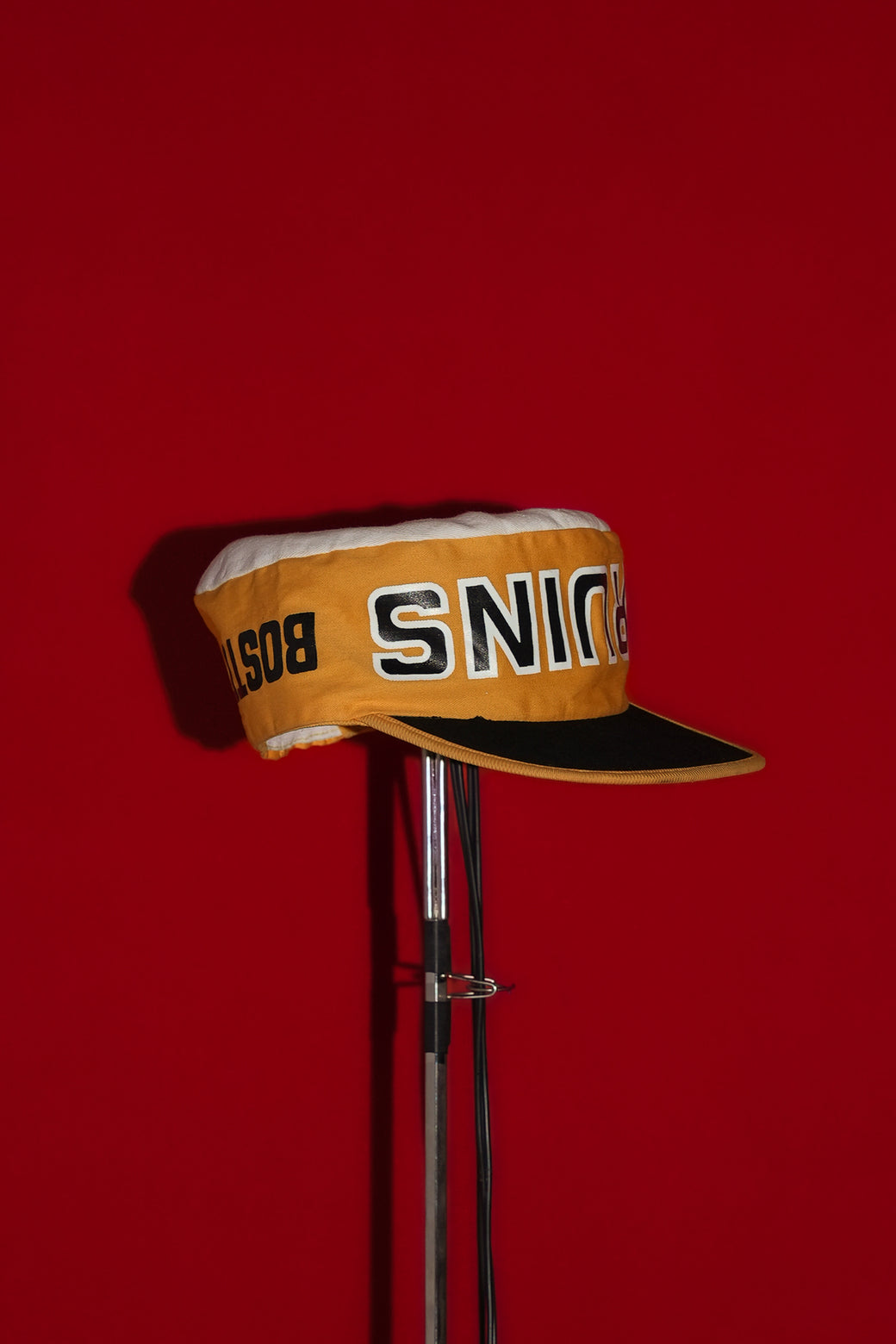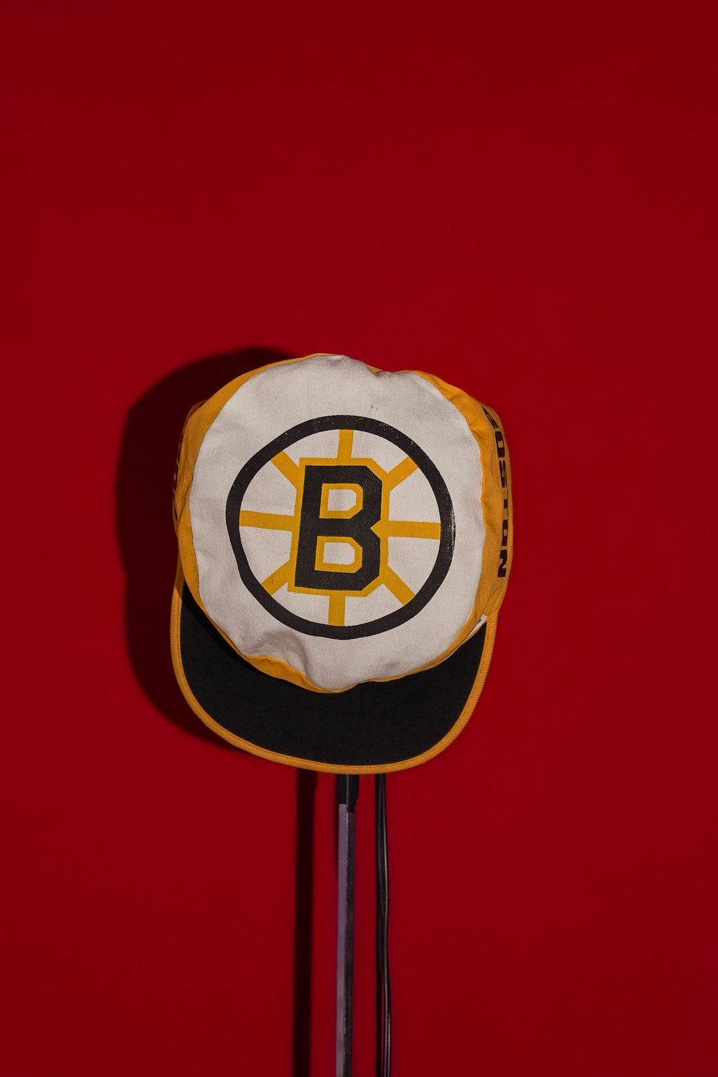 This is a 1980s NHL Boston Bruins cap. It maintains good condition with appropriate aging characteristics.