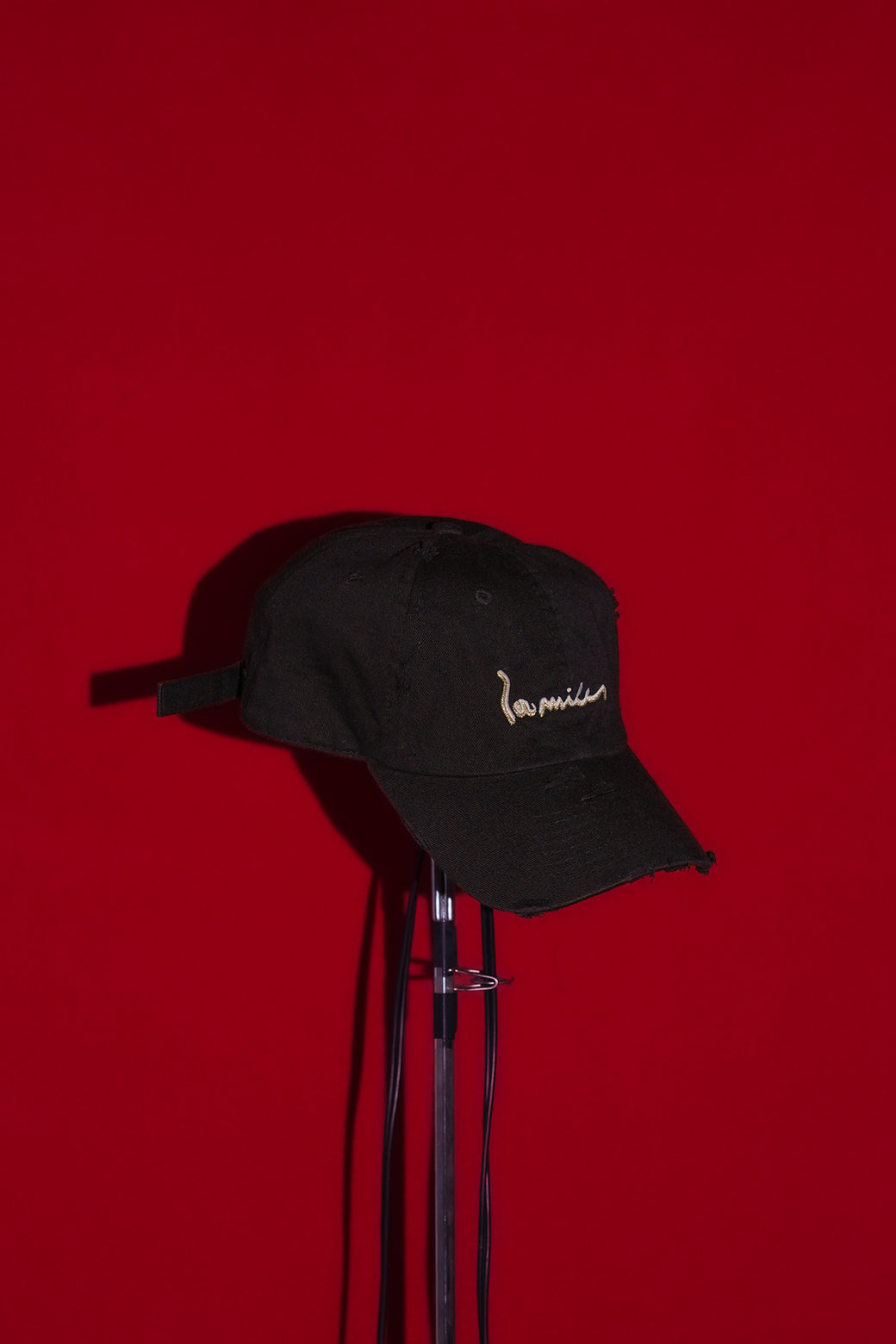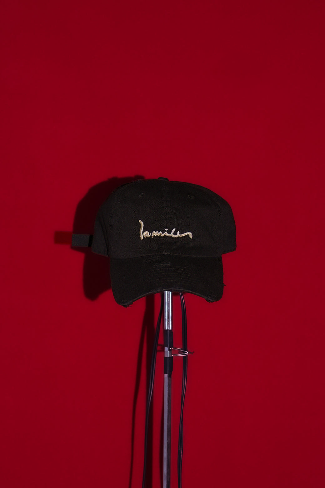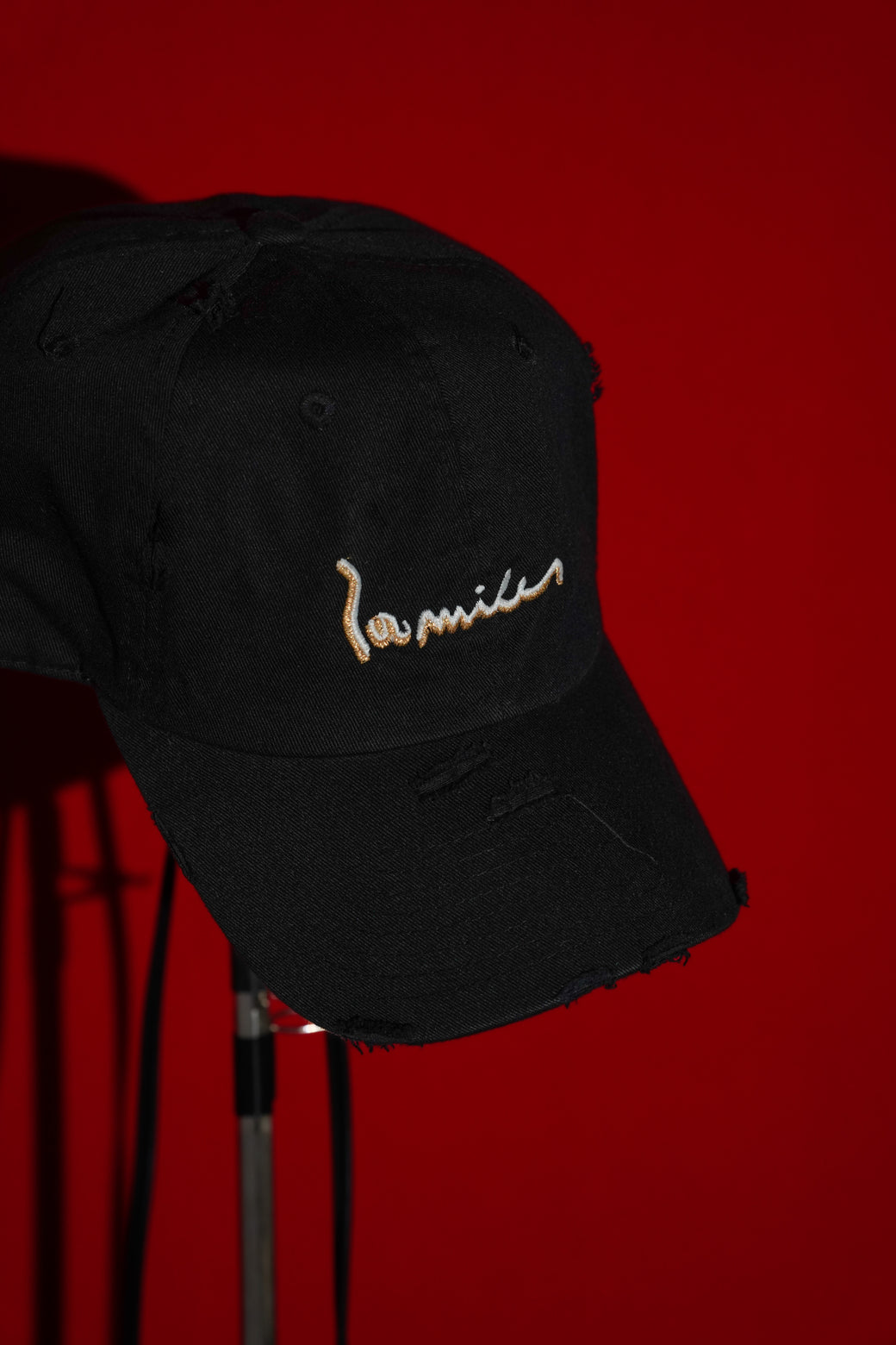 This is a dad cap from Toronto-based streetwear brand “100 MILES”. In the 90s, it was worn by Tupac, Notorious B.I.G., and ODB (Wu-Tang Clan). The body features a distressed finish, and the adjuster is a strapback. It maintains a well-worn condition with appropriate aging.