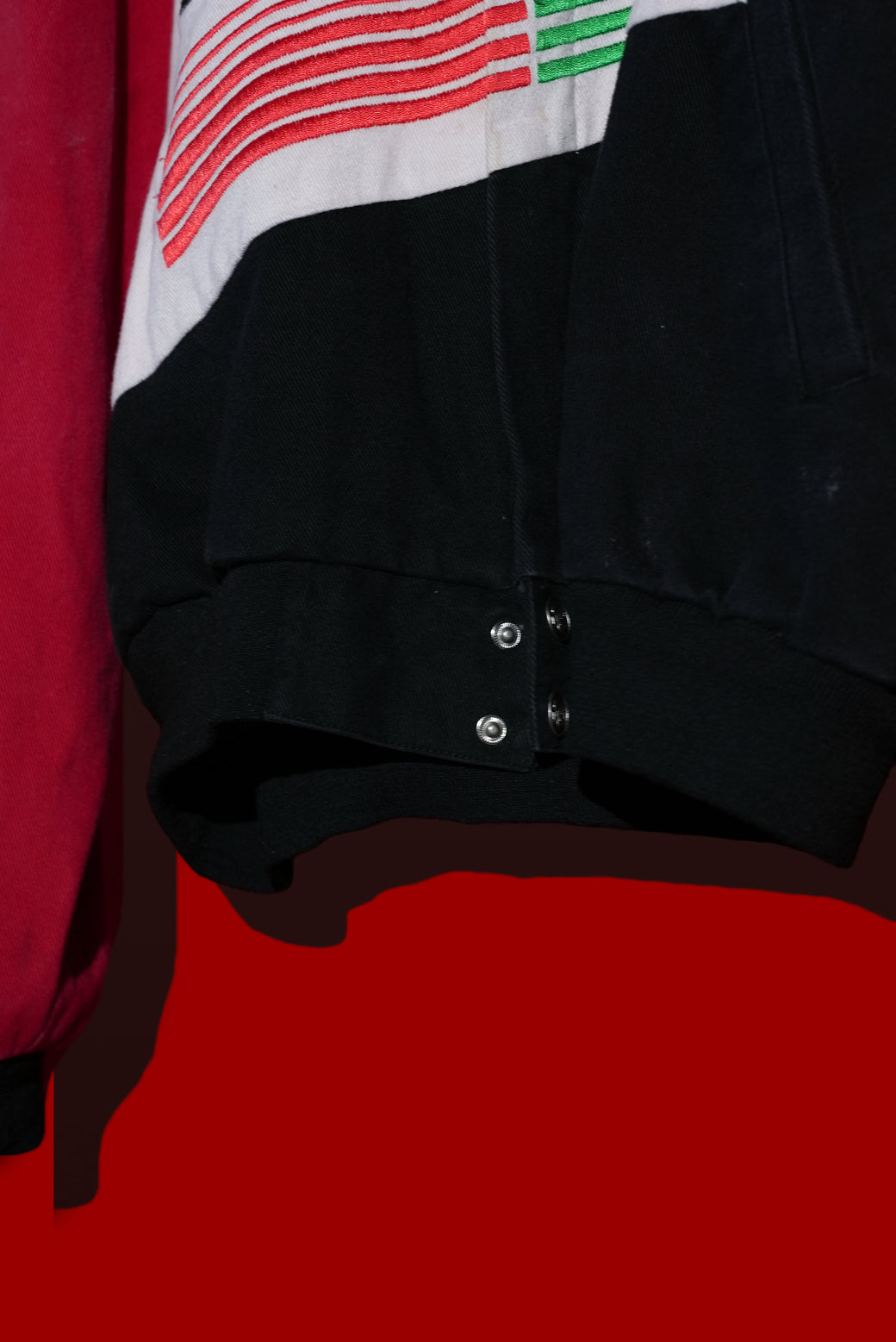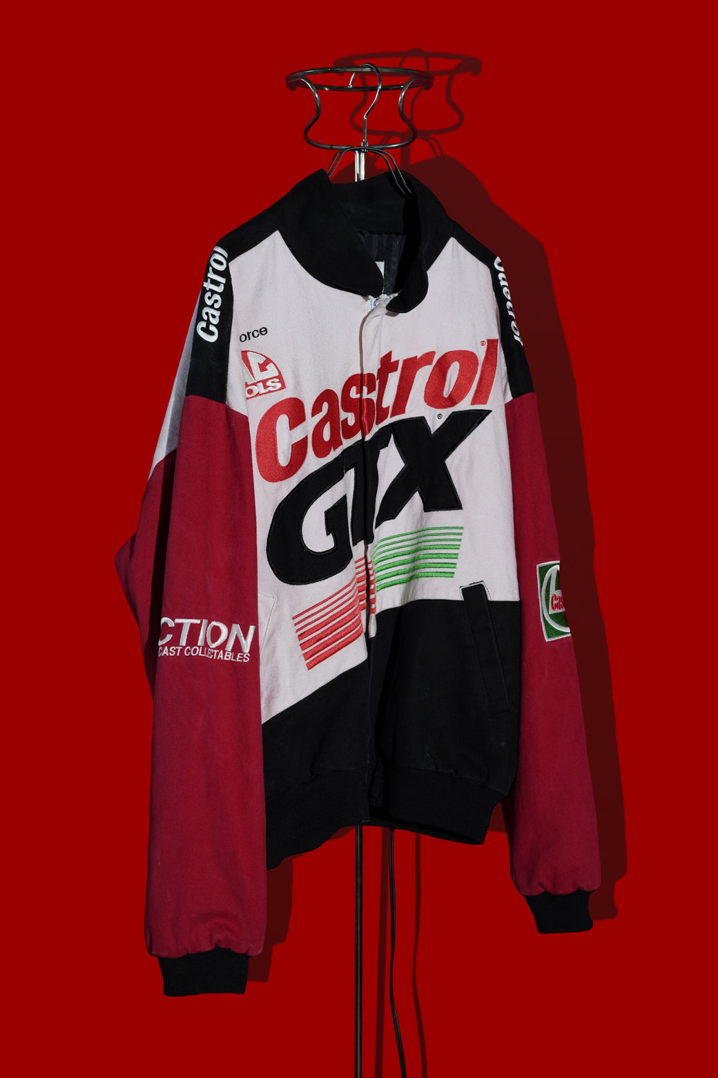 アメリカのモーターブランドの"Chase Authentics"のレーシングジャケット。 グラフィックはスポンサードしていた"Castrol GTX”。 胸部、背面部と袖部のグラフィックは刺繍で施されています。白地の部分が若干ピンクに染色していますが、経年による適切な風合いを伴ったコンディション。
