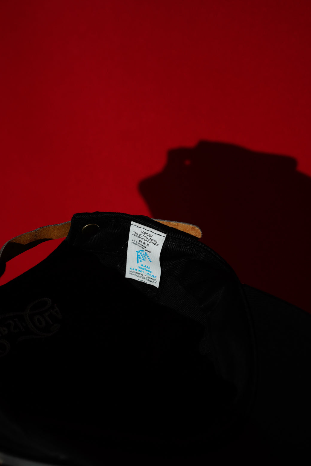 This is a 6-panel cap from the 2000s. It features embroidery reading “Godfathers” on the front and “PEPSI-COLA” on the back. The body is manufactured by A.J.M. Headwear, and the adjuster is a strapback. It is in good condition with appropriate aging.