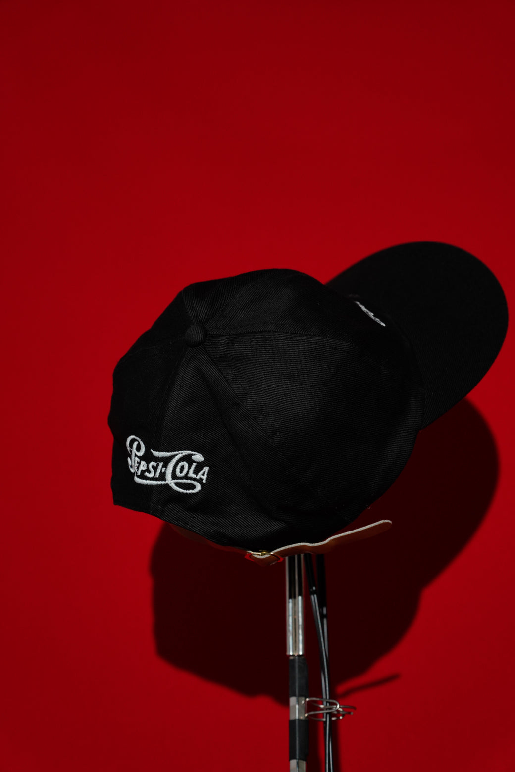 2000年代の6パネルキャップ。フロントに"Godfathers"、バックに"PEPSI-COLA"の刺繍が施されている。ボディはA.J.M. Headwear社製で、アジャスターはストラップバック。経年による適切な風合いを伴ったコンディション。