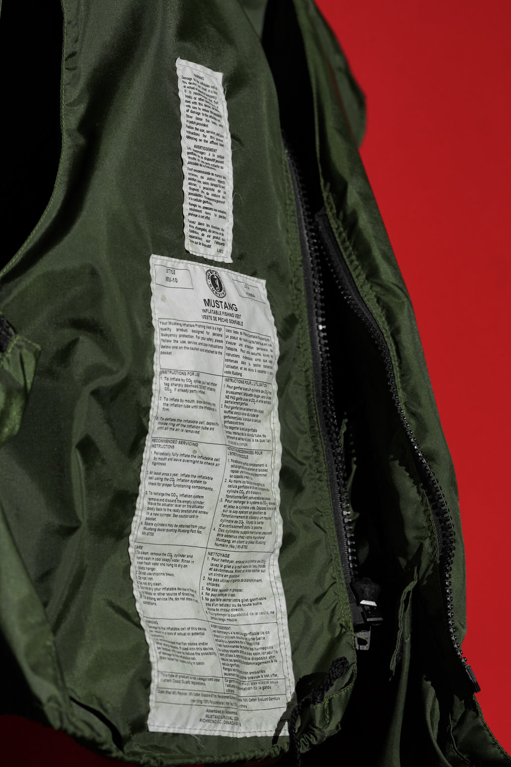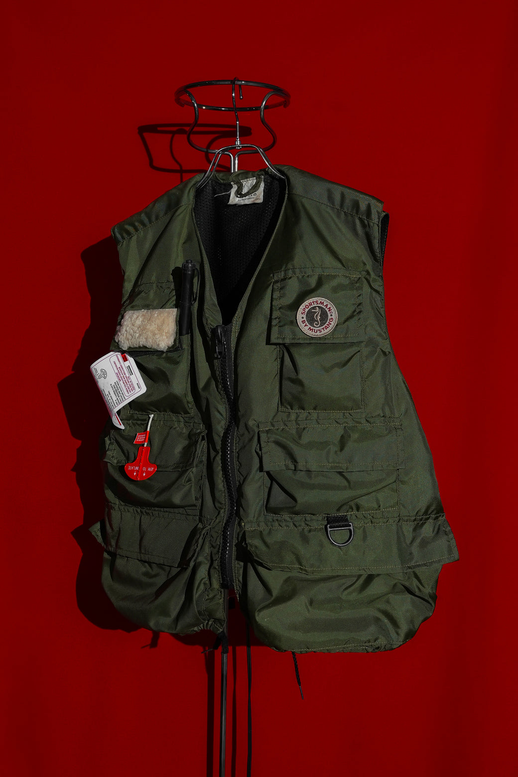 “MUSTANG SURVIVAL” is a brand that has designed and developed technical solutions for the military and law enforcement agencies. As a vest, it also boasts high design quality and functionality. Condition: While the tags show some damage, it is deadstock complete with manual.