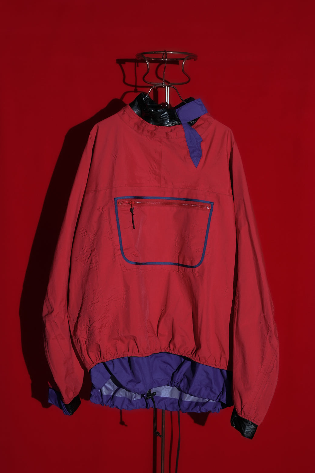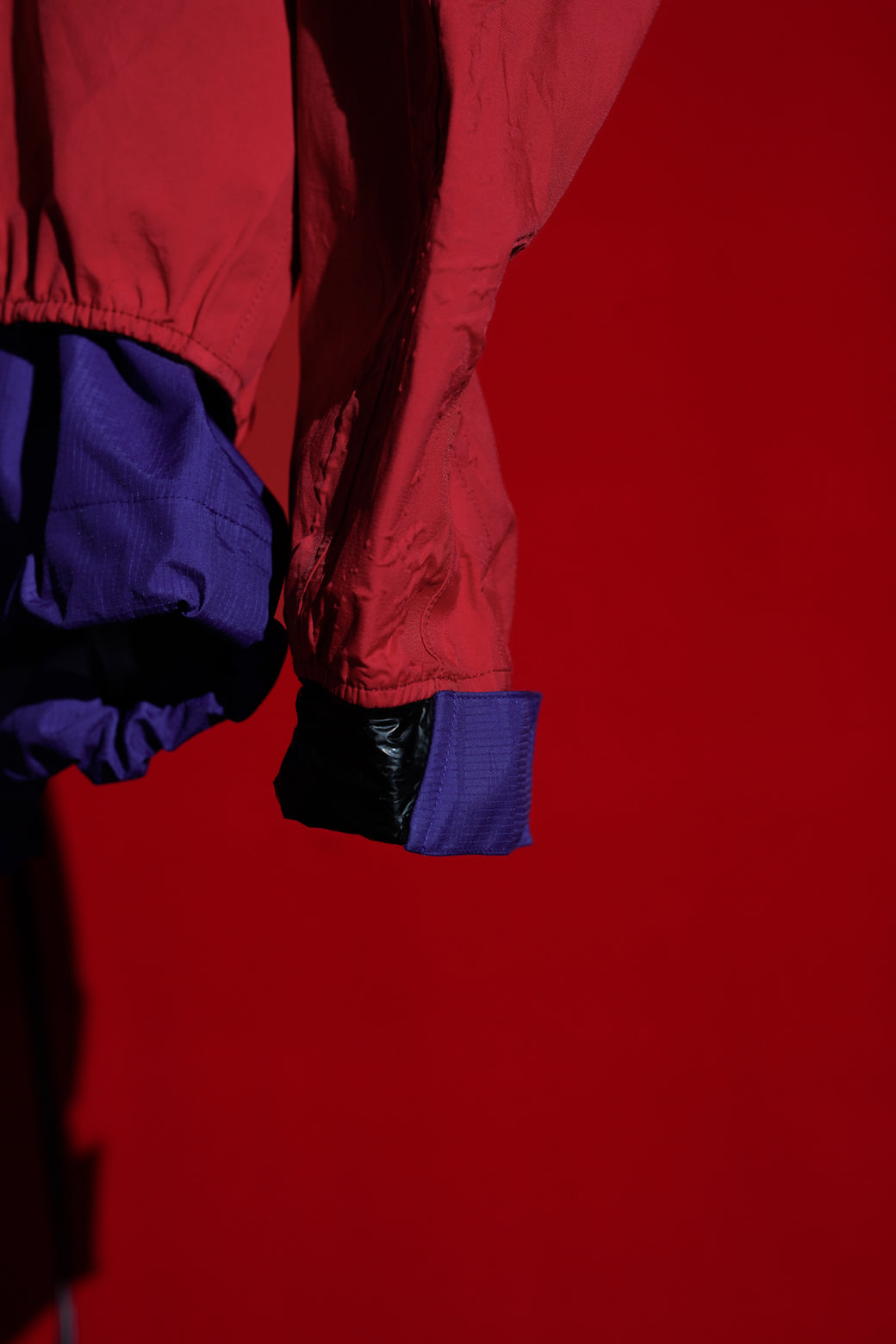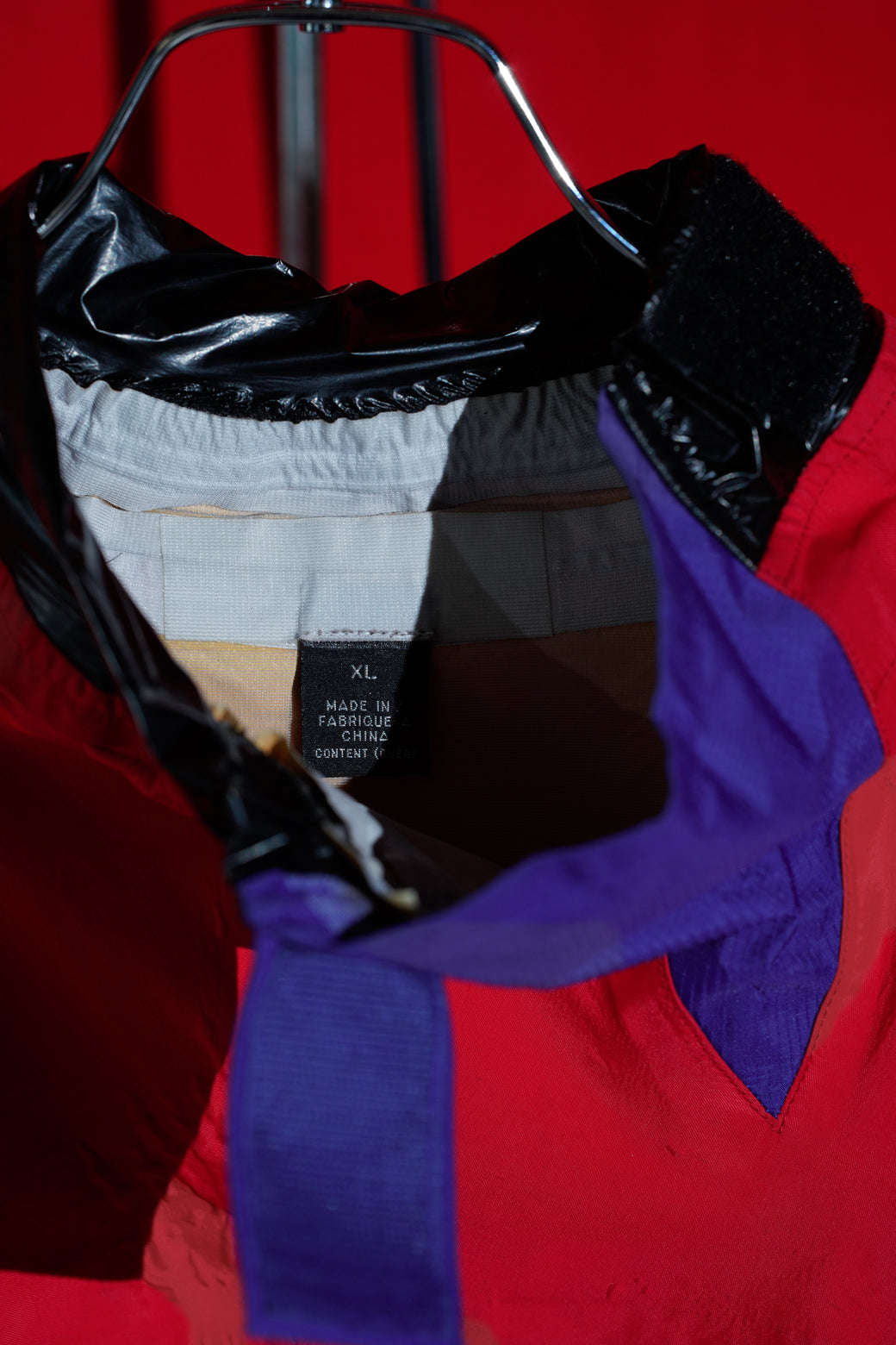 経年で芯材との剥離からパッカリングのような現象が出ています。着用には不便はありませんが気になる方はお控えください。その箇所以外はいいコンディションで、それらを超越するサイズ感、カラーリング、デザインは秀逸。