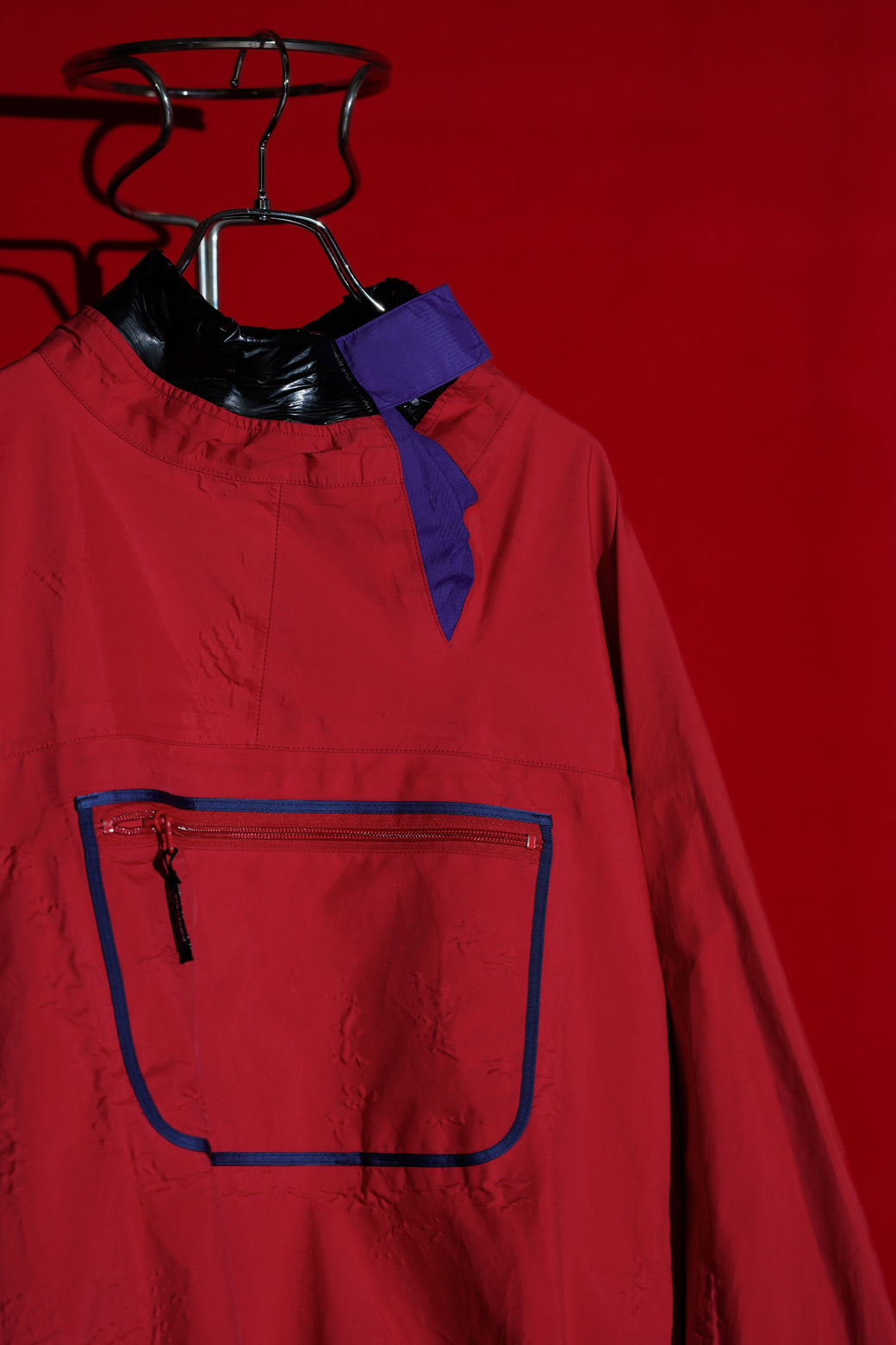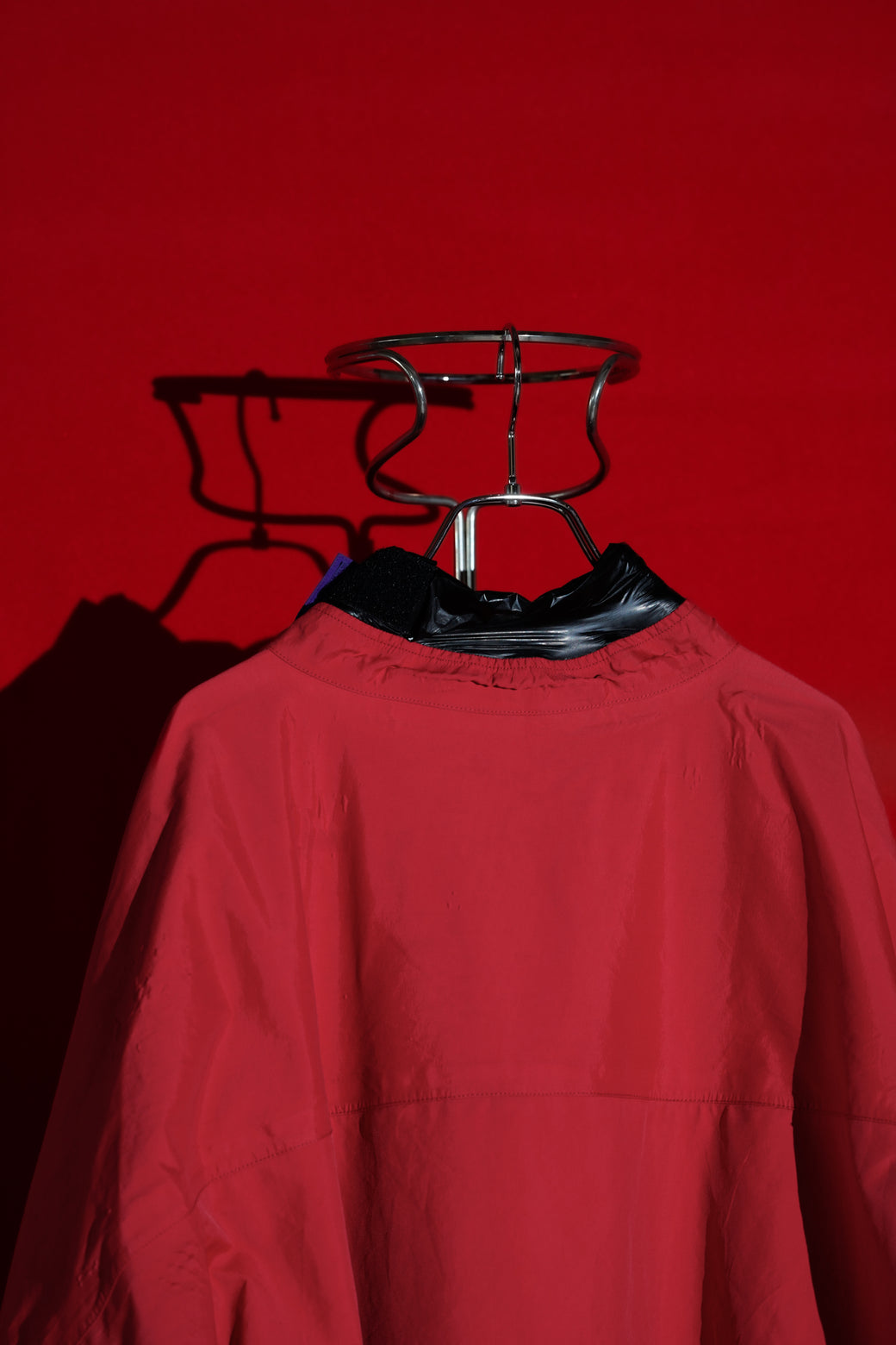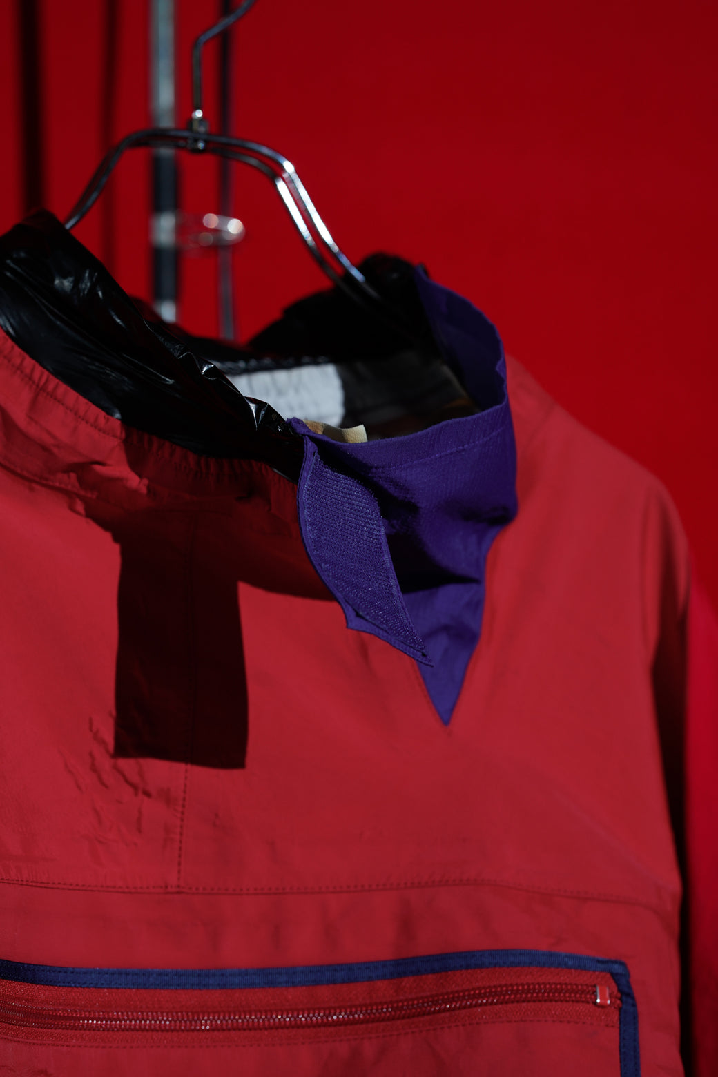 経年で芯材との剥離からパッカリングのような現象が出ています。着用には不便はありませんが気になる方はお控えください。その箇所以外はいいコンディションで、それらを超越するサイズ感、カラーリング、デザインは秀逸。
