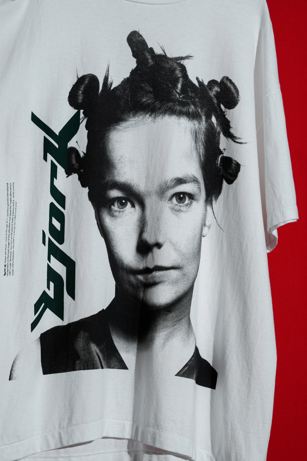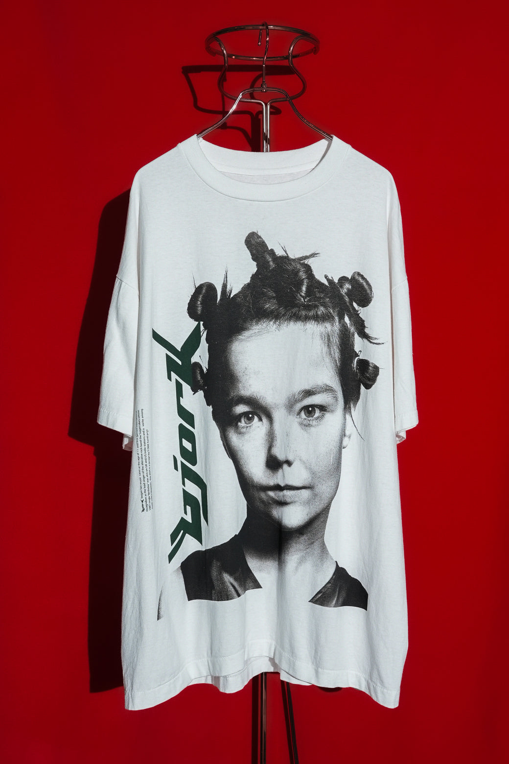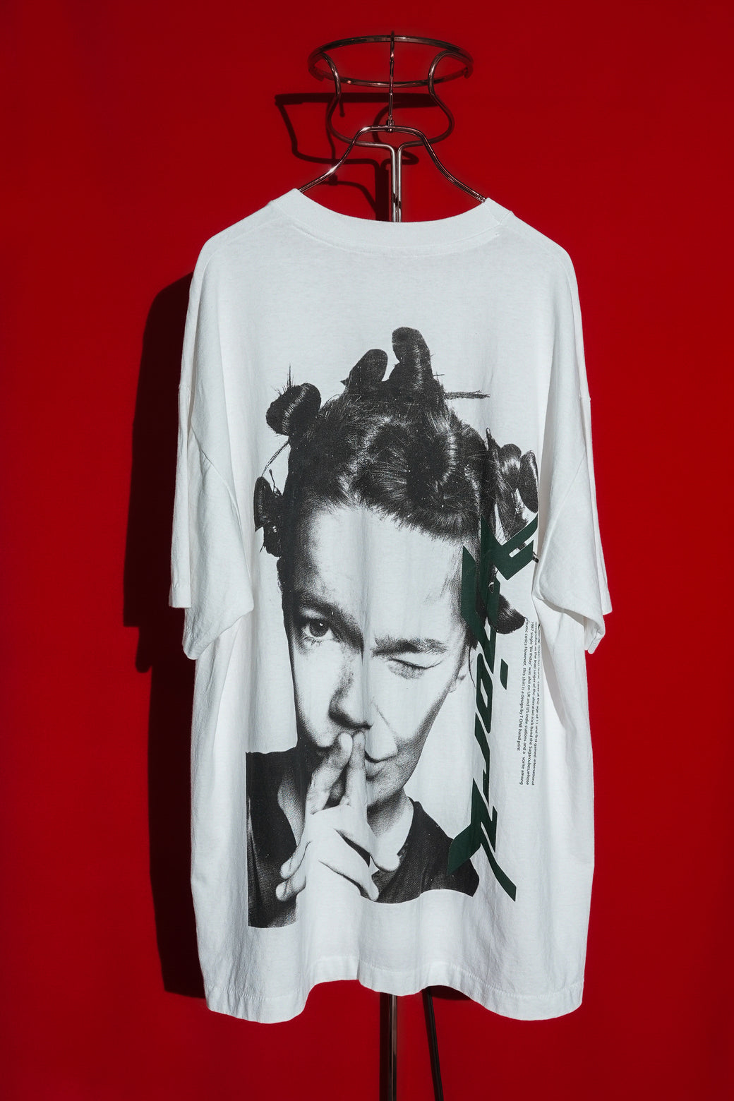 BjörkのグラフィックTシャツ。前後の表情が違う、アンオフィシャルならではの希少なグラフィックが秀逸。デッドストックに近いコンディション。