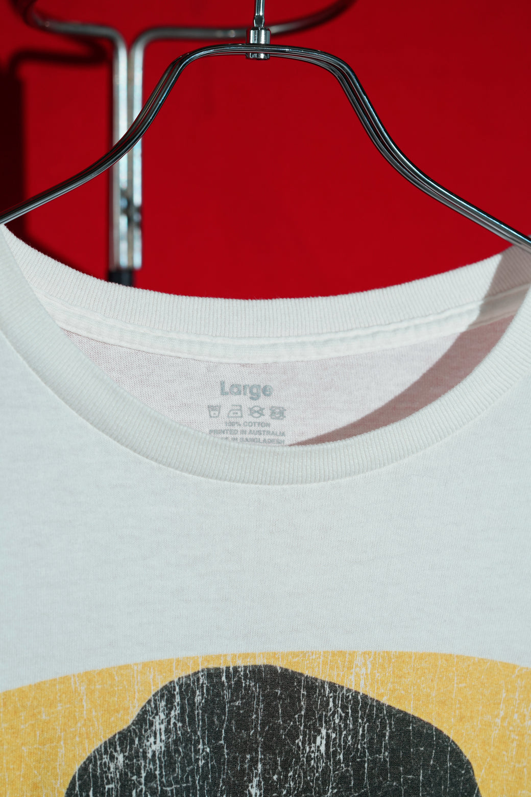 グラフィックは黒澤 明風ではあるが、特定は不明。ウォッシュド加工されたいいフェード感。ボディはINDONESIA製でプリントは AUSTRALIA製。経年による適切な風合いを伴った良好なコンディション。