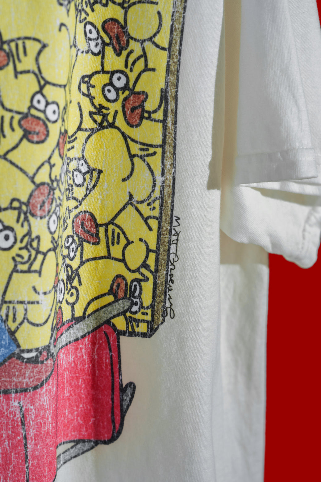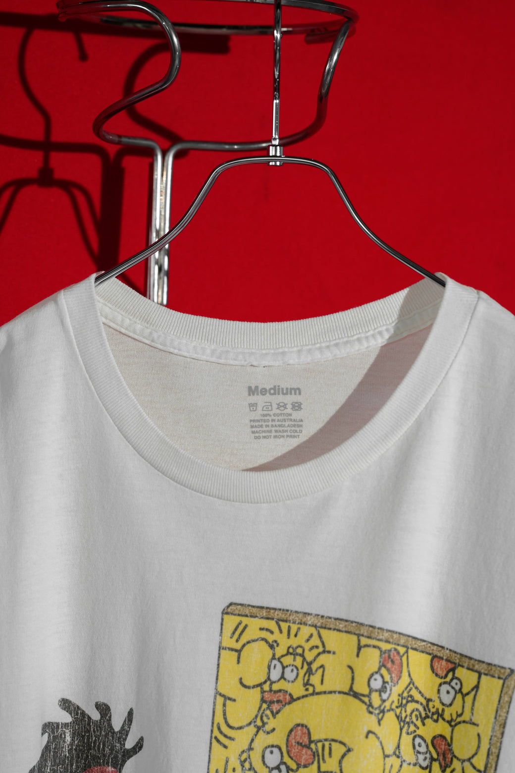 This is a Basquiat x The Simpsons collaboration tee. It samples the design made famous when Jay Z wore it in the early 90s. The body is made in INDONESIA, and the print is made in AUSTRALIA. It's in good condition with a nice, aged look.