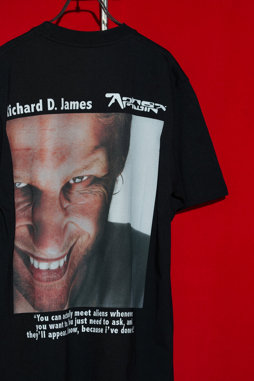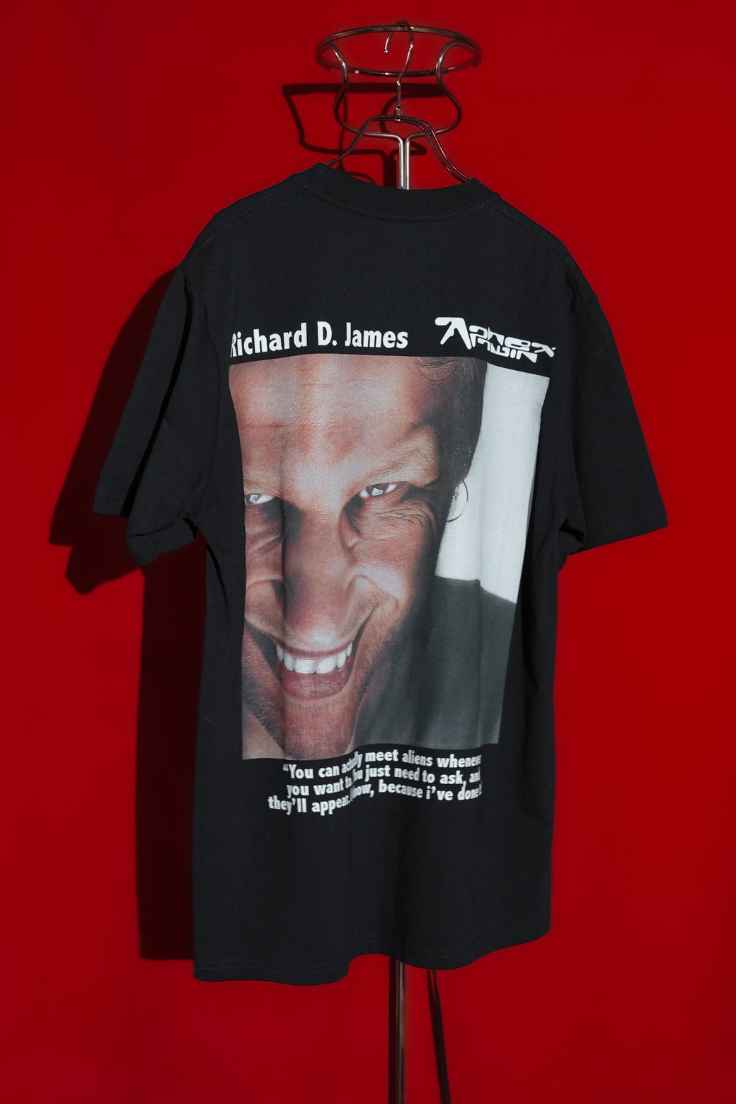 "Aphex Twin"こと"Richard D. James"のグラフィックTEE。フロントはシグネチャーロゴ、バックには彼の言葉が記されている。直訳すると、「宇宙人に会いたい時はいつでも会えるんだ。お願いするだけで、彼らは現れる。だって、実際にやったことがあるからね。」アンオフィシャルではない、ブートレグならではのグラフィックが秀逸。ボディはStitch Supply製でMADE IN INDONESIA。コンディションはデッドストック。