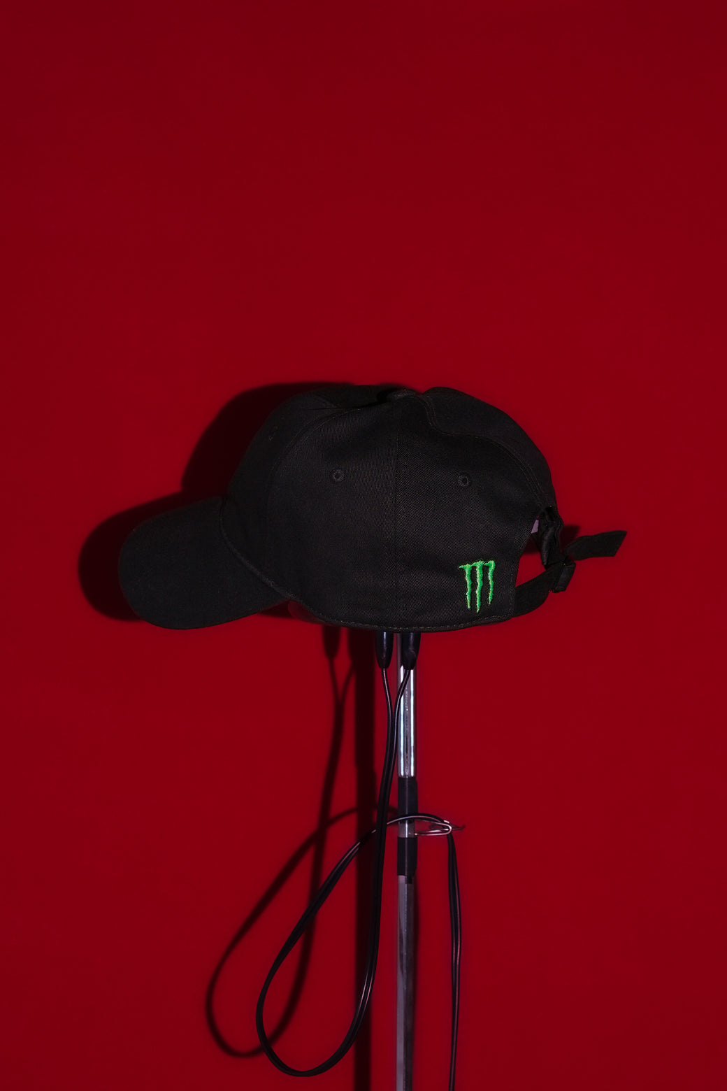 "Monster"の6パネルキャップ。アジャスターはストラップバック。経年による適切な風合いを伴った良好なコンディション。