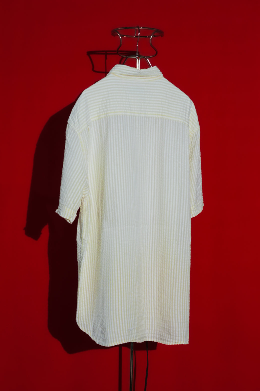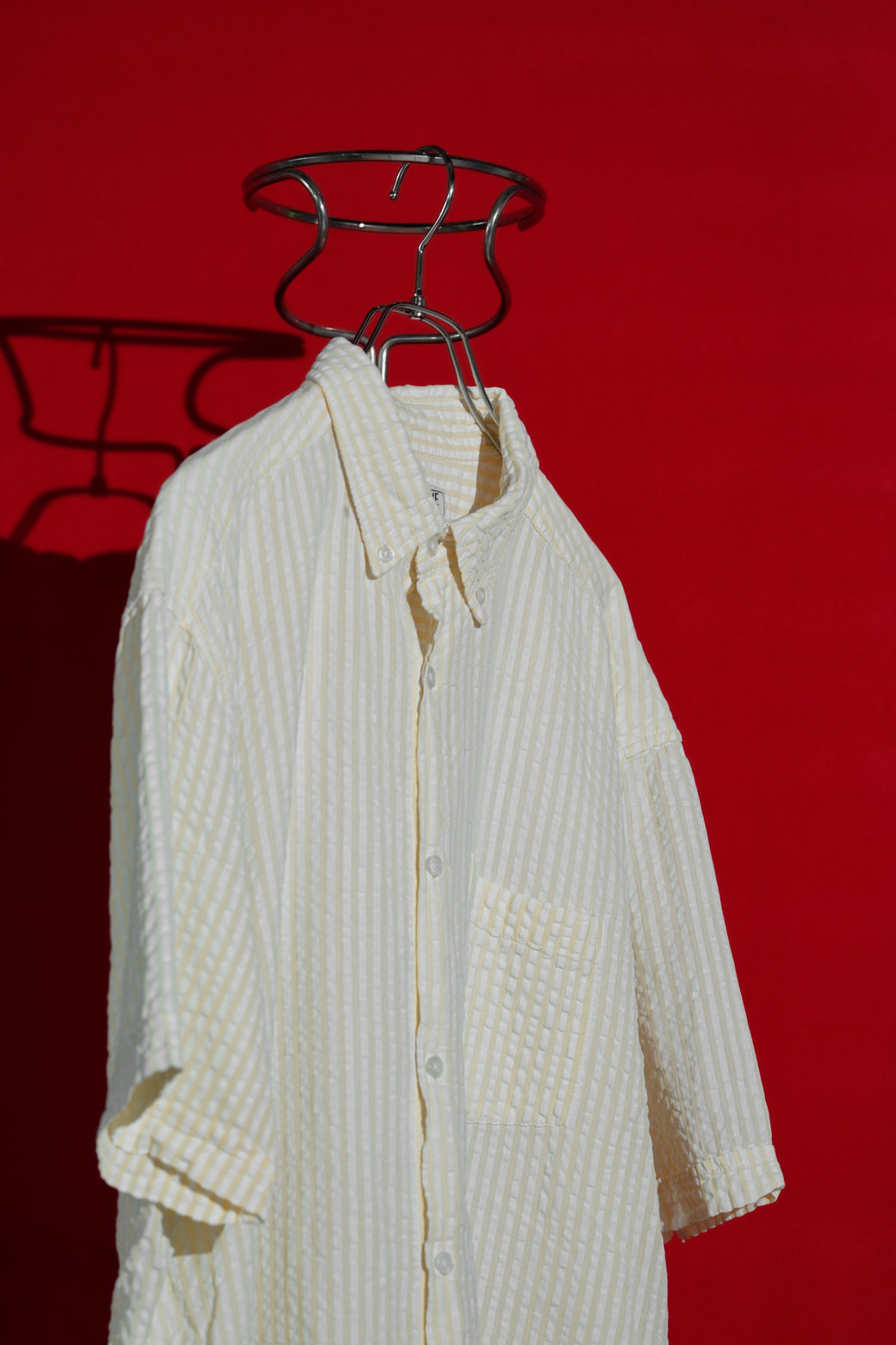This is a seersucker button-down shirt from the French-born brand“L'HOMME MODERNE.” It maintains good condition with an appropriate aged patina.