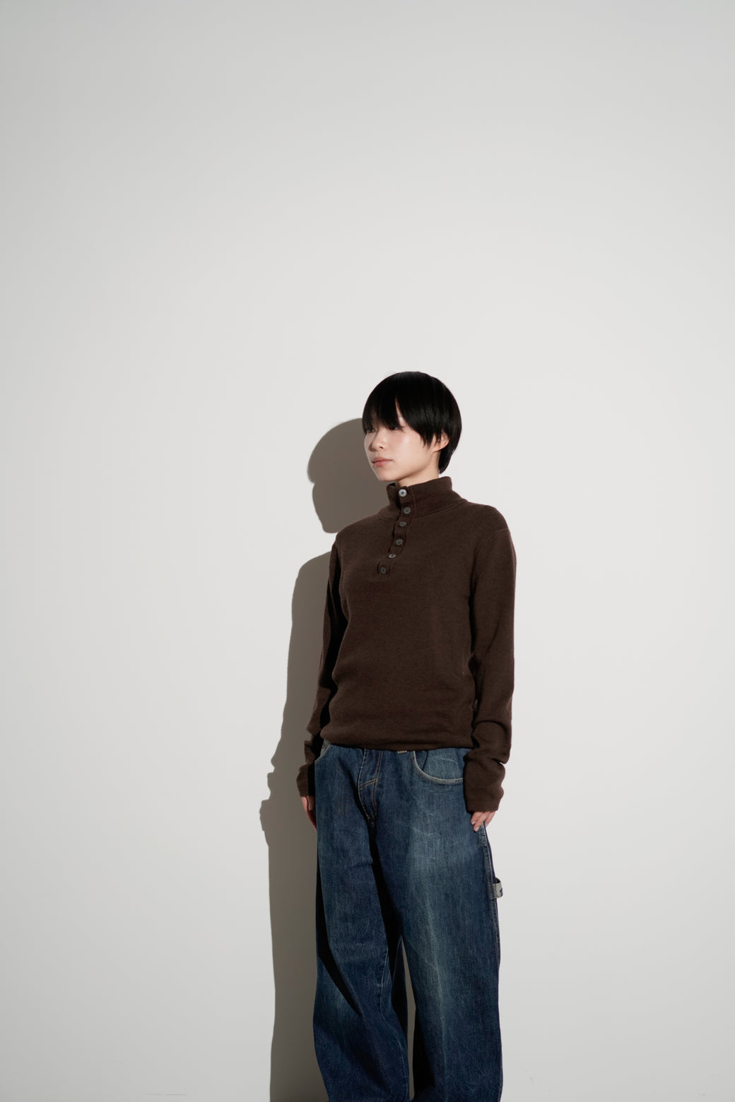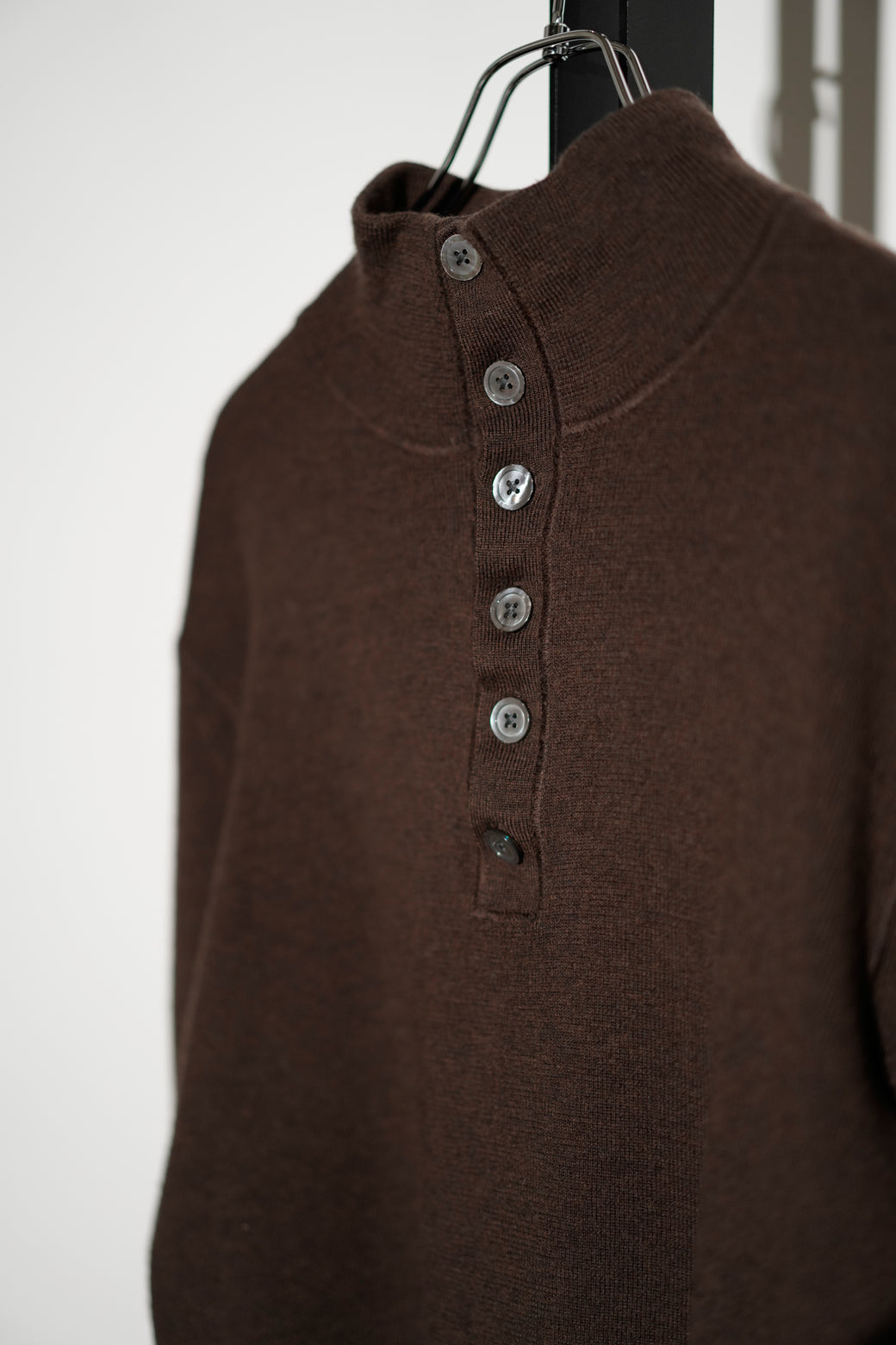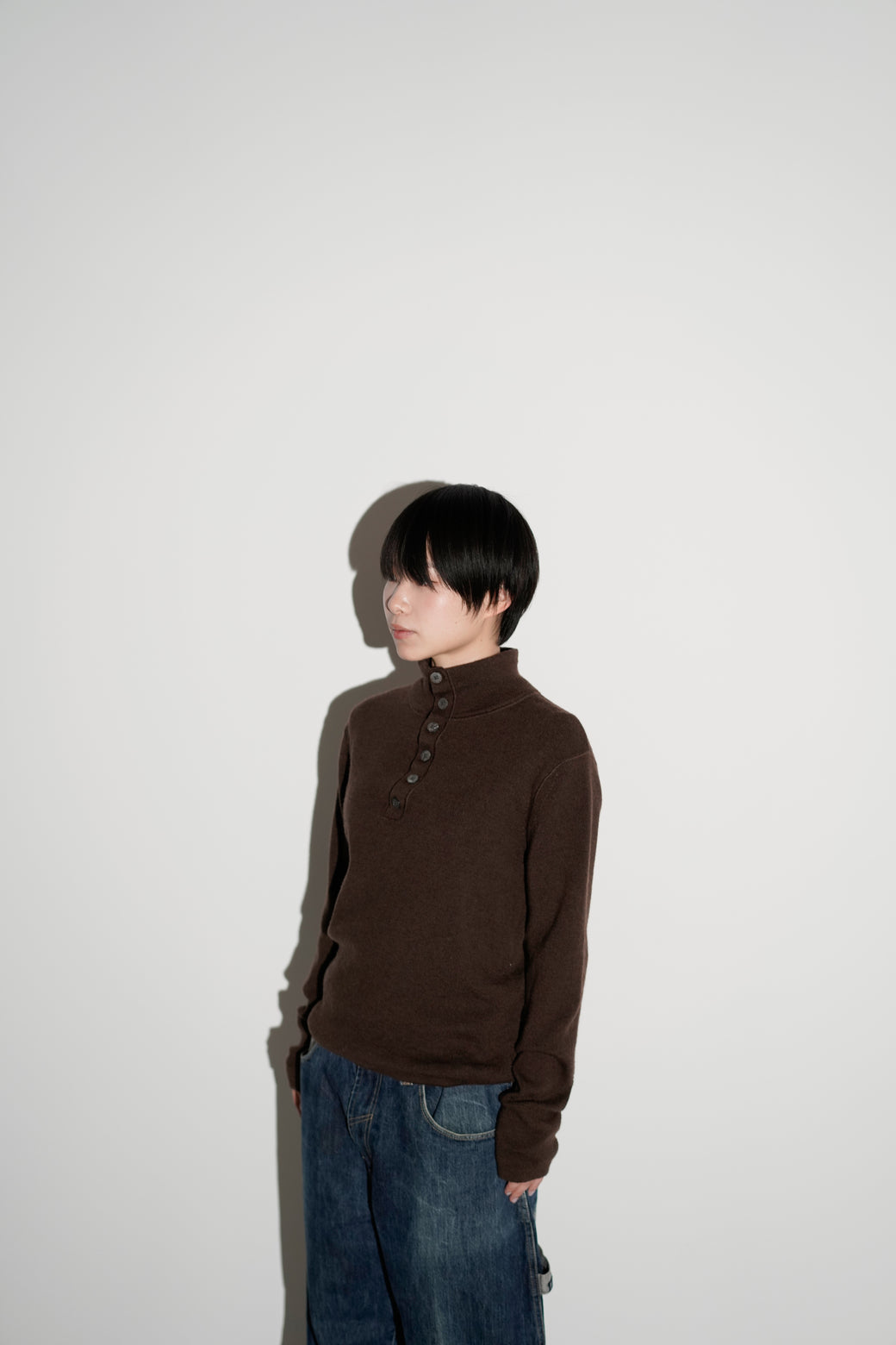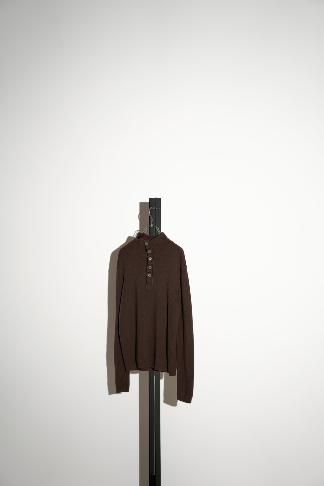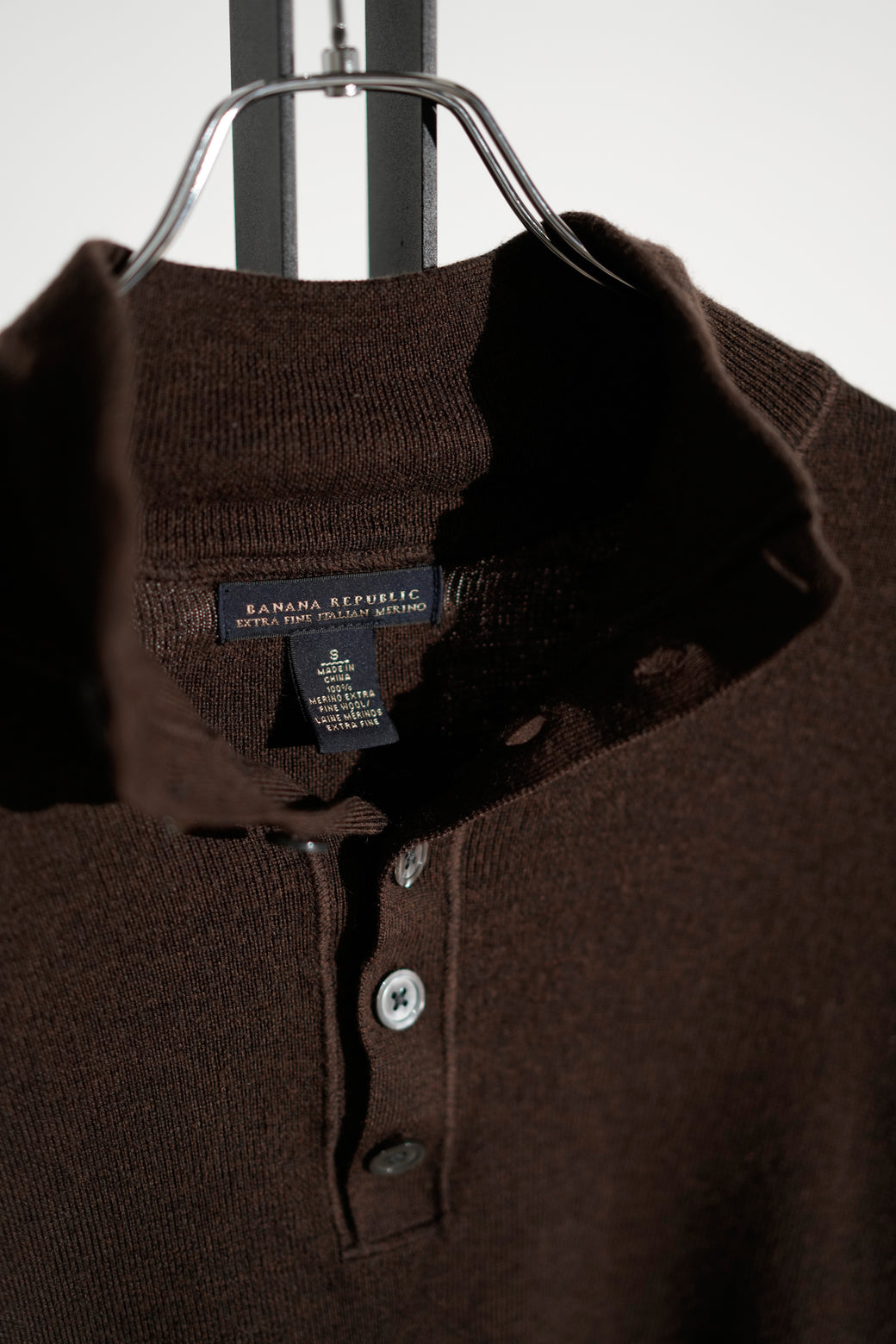 Banana Republicのモックネックセーター。6ボタンのヘンリープラケットでなめらかなメリノウール、肘にはエルボーパッチを配置。経年による適切な風合いを伴った良好なコンディション。