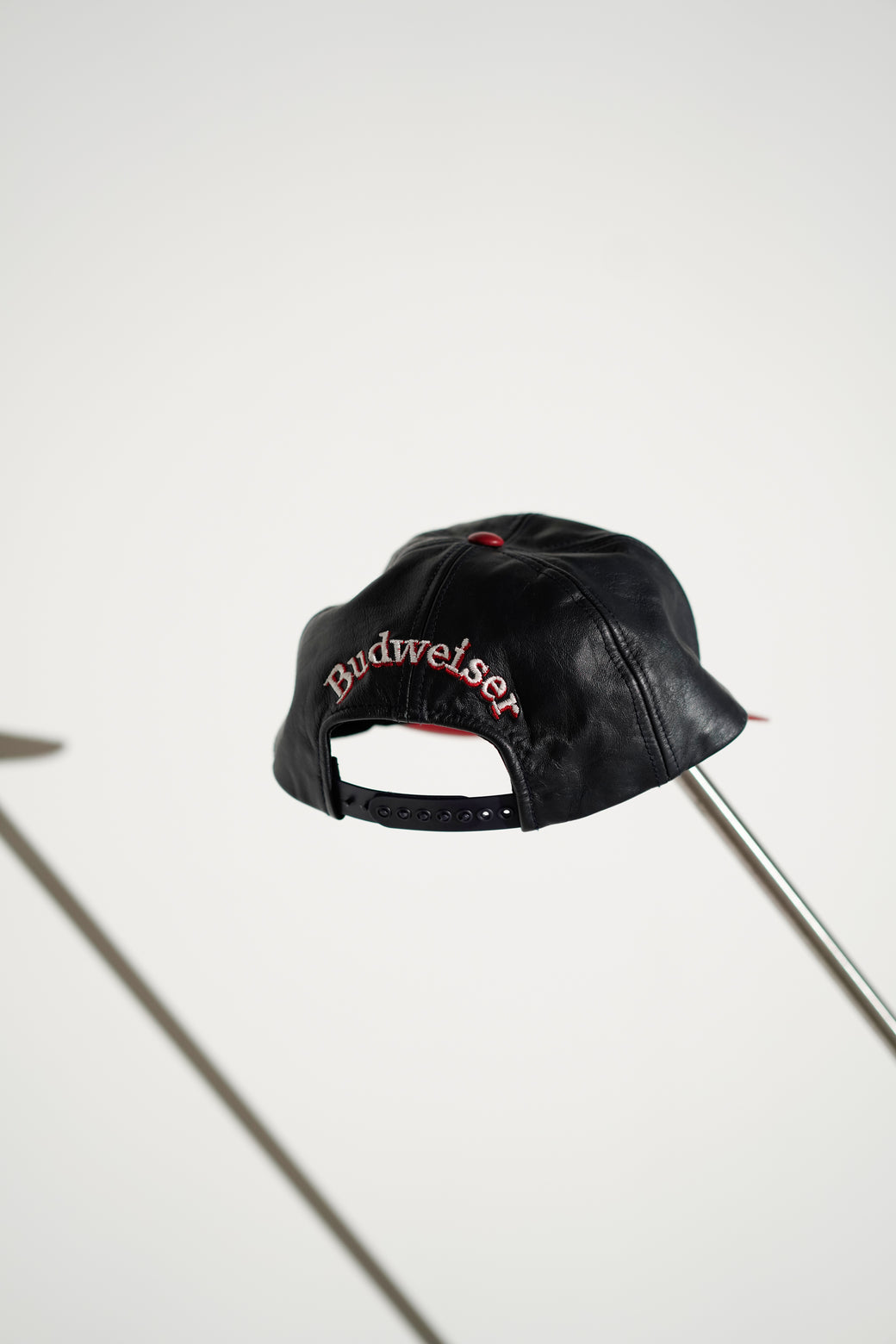 Budweiserロゴを刺繍で配した1990年代の6パネルキャップ。アジャスターはスナップバック。経年による適切な風合いを伴った良好なコンディション。