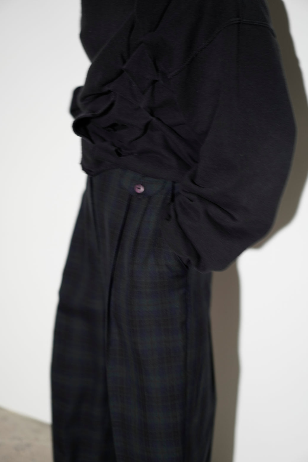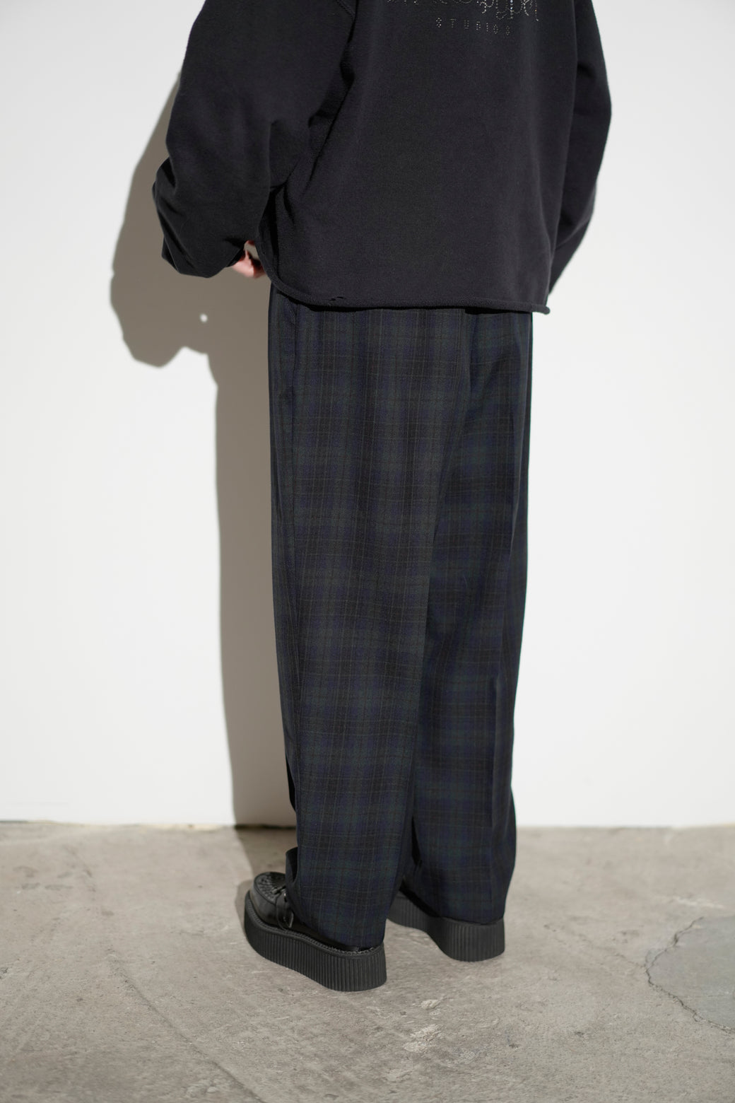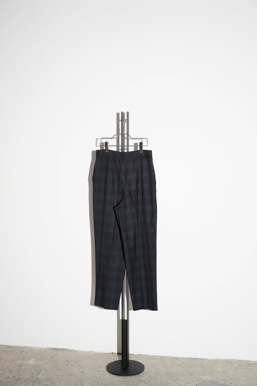1990年代のチェック柄スラックス。深めのツータック仕様によるゆとりのある腰回りで、クラシックなドレスパンツの構造。経年による適切な風合いを伴った良好なコンディション。