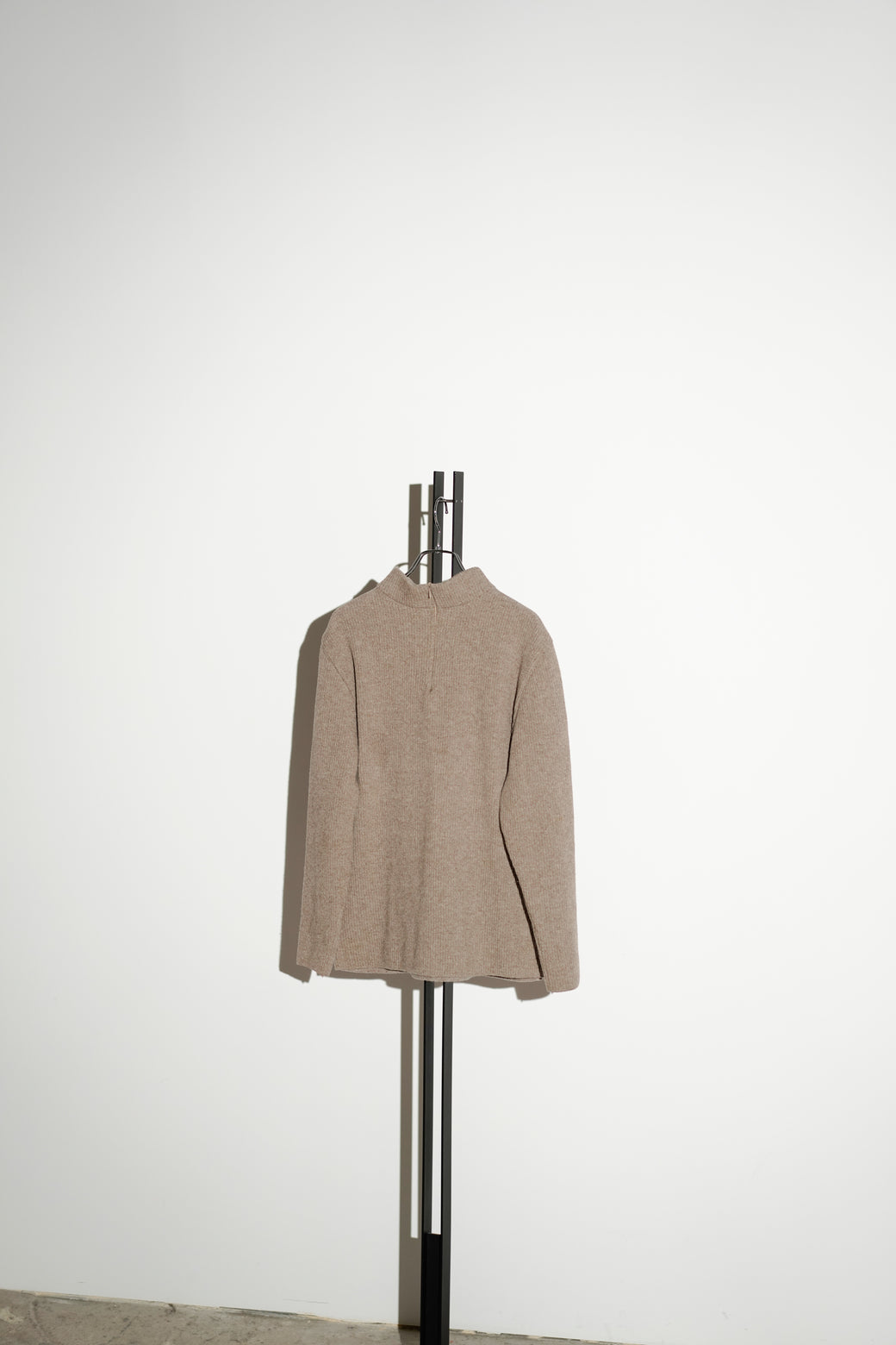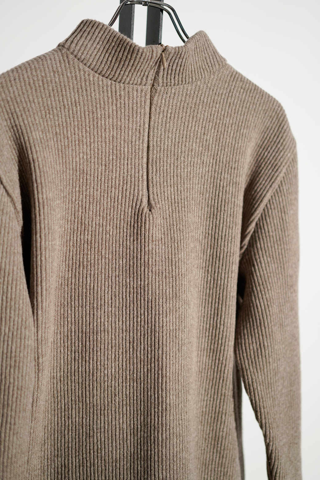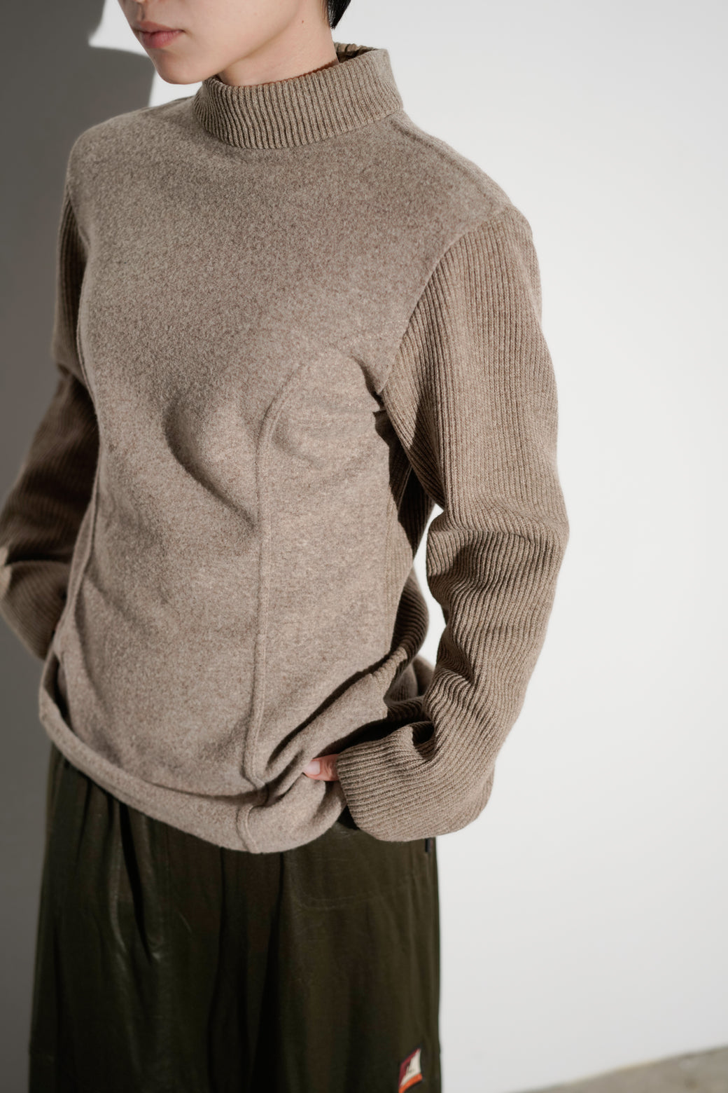 異なる編地を組み合わせたタートルネックニット。ウエストにかけて緩やかにシェイプされたシルエットが特徴。経年による適切な風合いを伴った良好なコンディション。