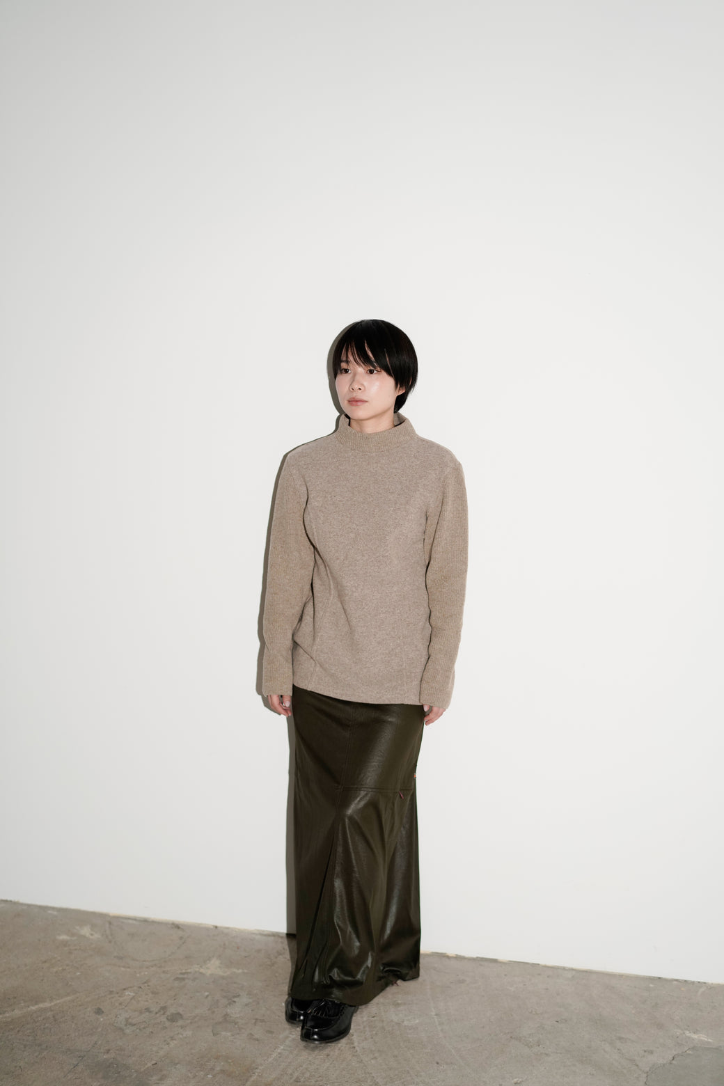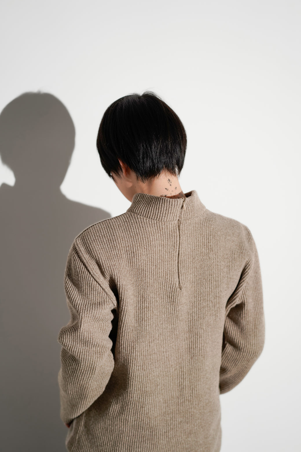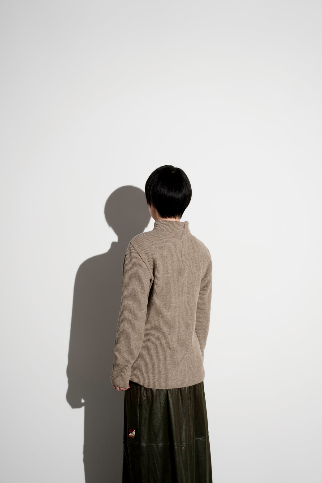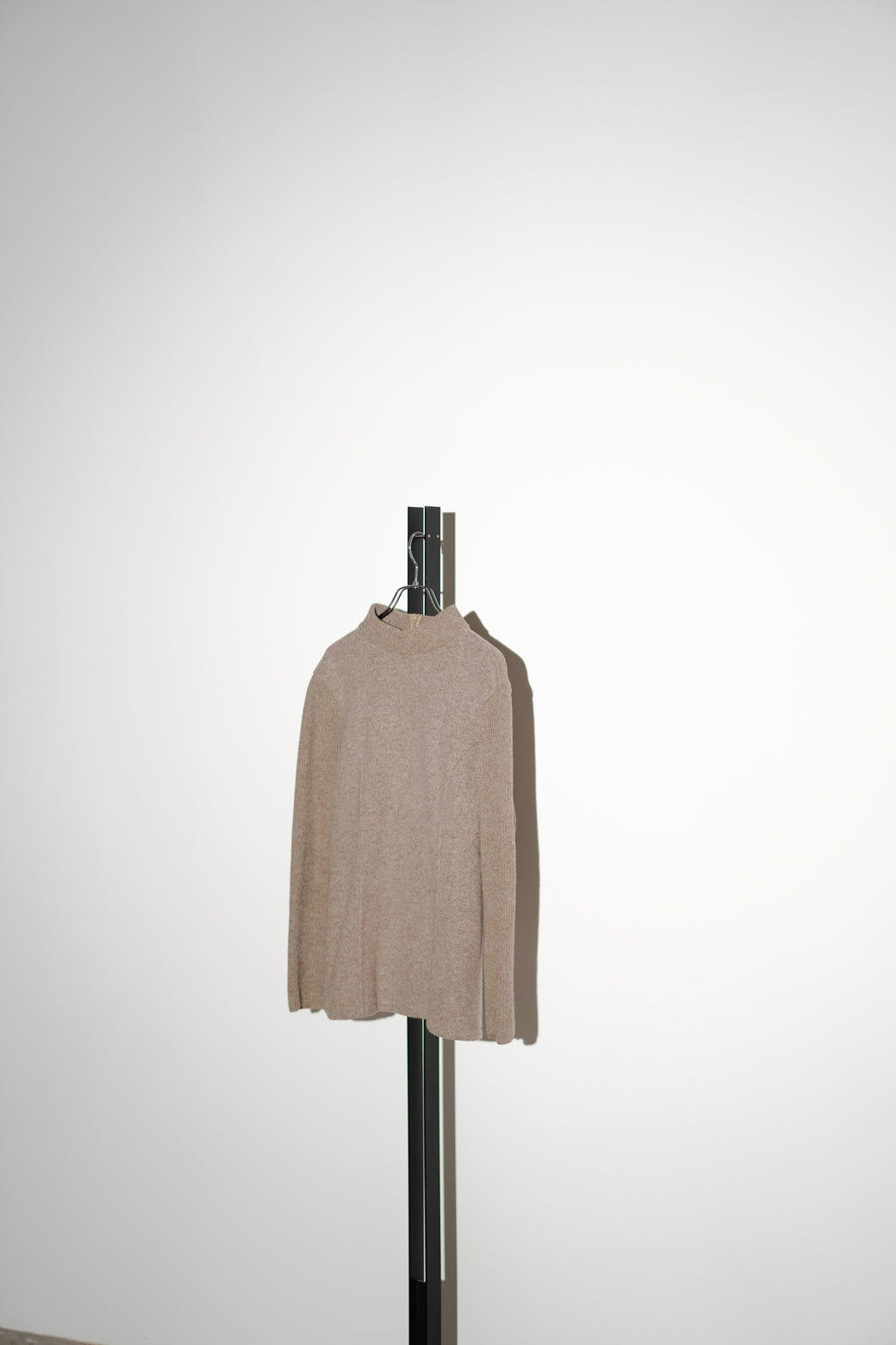 異なる編地を組み合わせたタートルネックニット。ウエストにかけて緩やかにシェイプされたシルエットが特徴。経年による適切な風合いを伴った良好なコンディション。