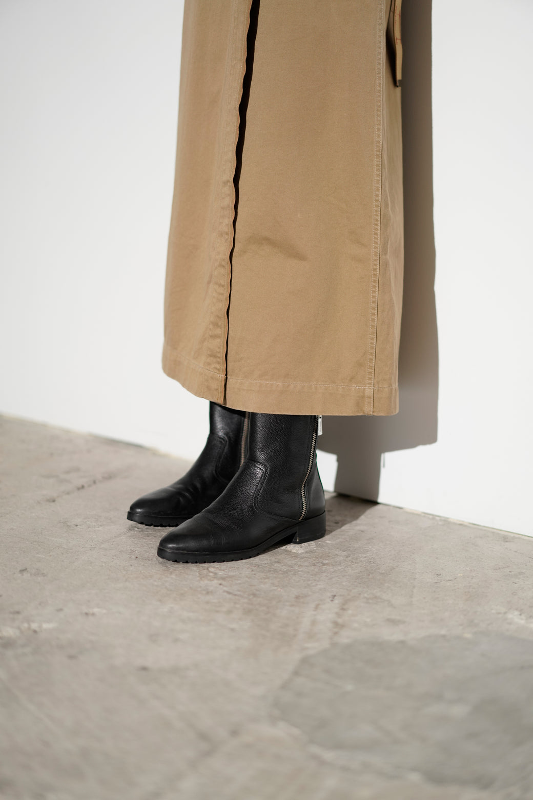 2000年代の"MICHAEL KORS"のレザーアンクルブーツ。シルエットは癖のないプレーントゥのアンクル丈でサイドジップのみで構成されたクリーンなデザイン。アッパーにはシボ感のあるブラックレザーを使用。内側に擦れはありますが、表面は経年による適切な風合いを伴った良好なコンディション。