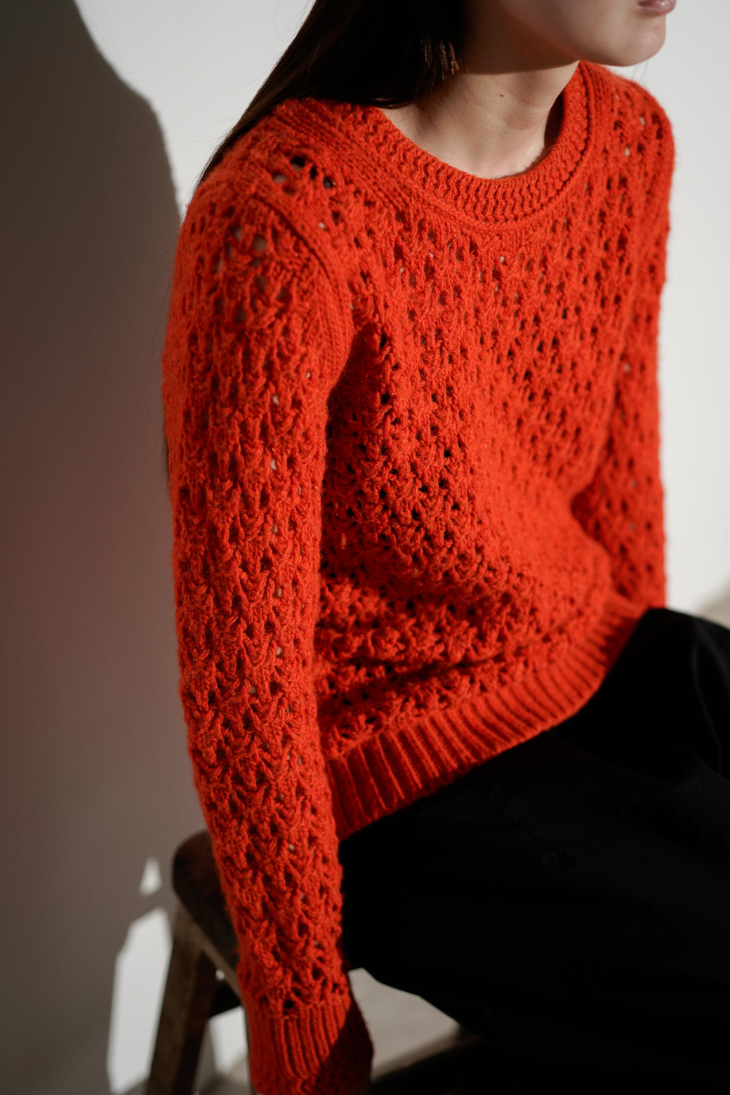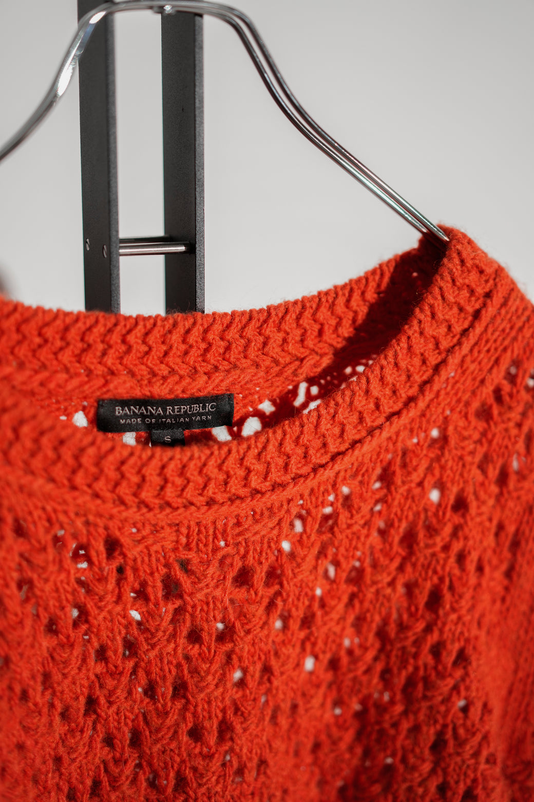 Banana Republicの透かし編みニットトップ。ふんわりとした毛足のある糸を使用し、ほどよい立体感と柔らかさを両立。経年による適切な風合いを伴った良好なコンディション。