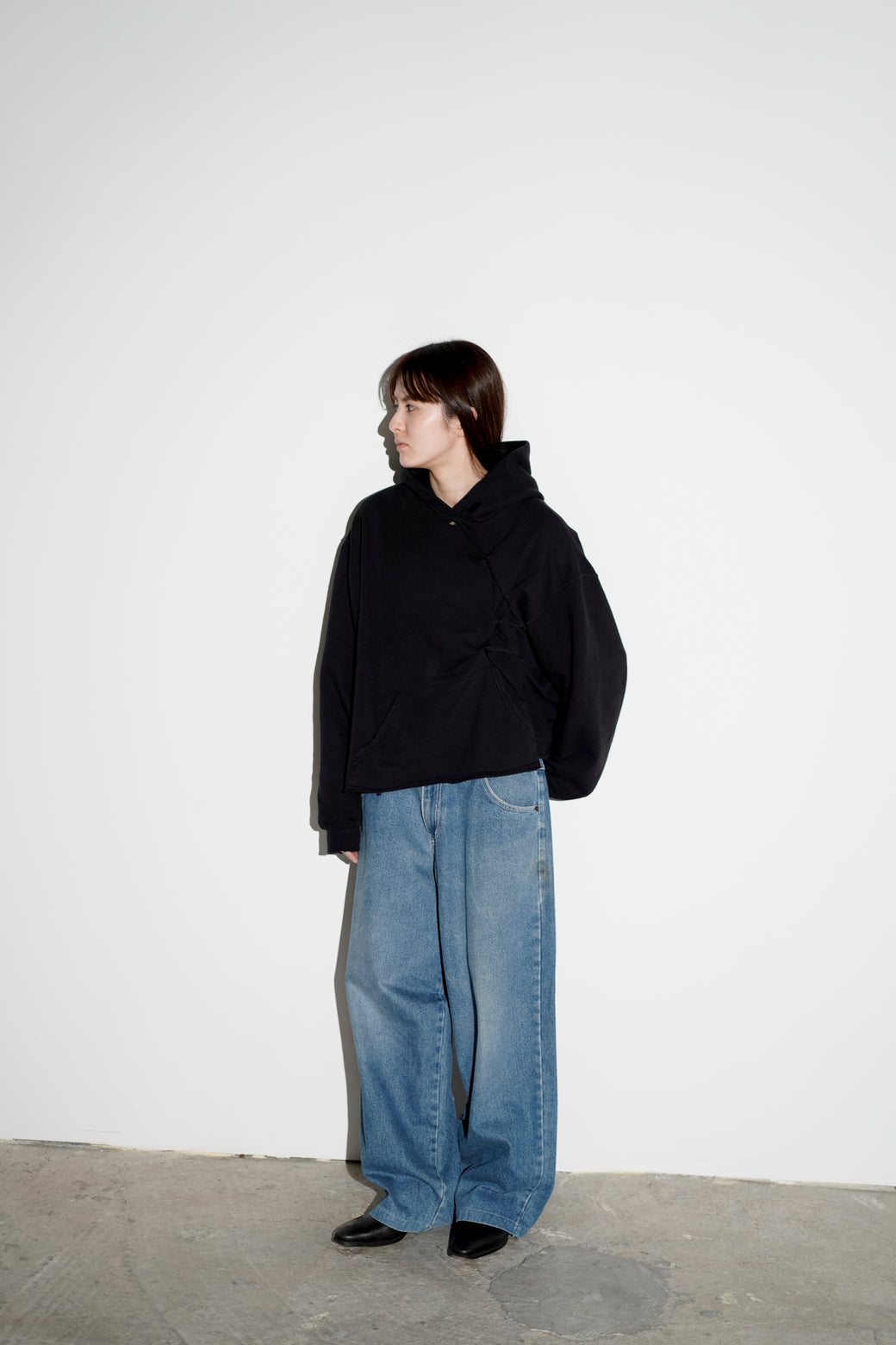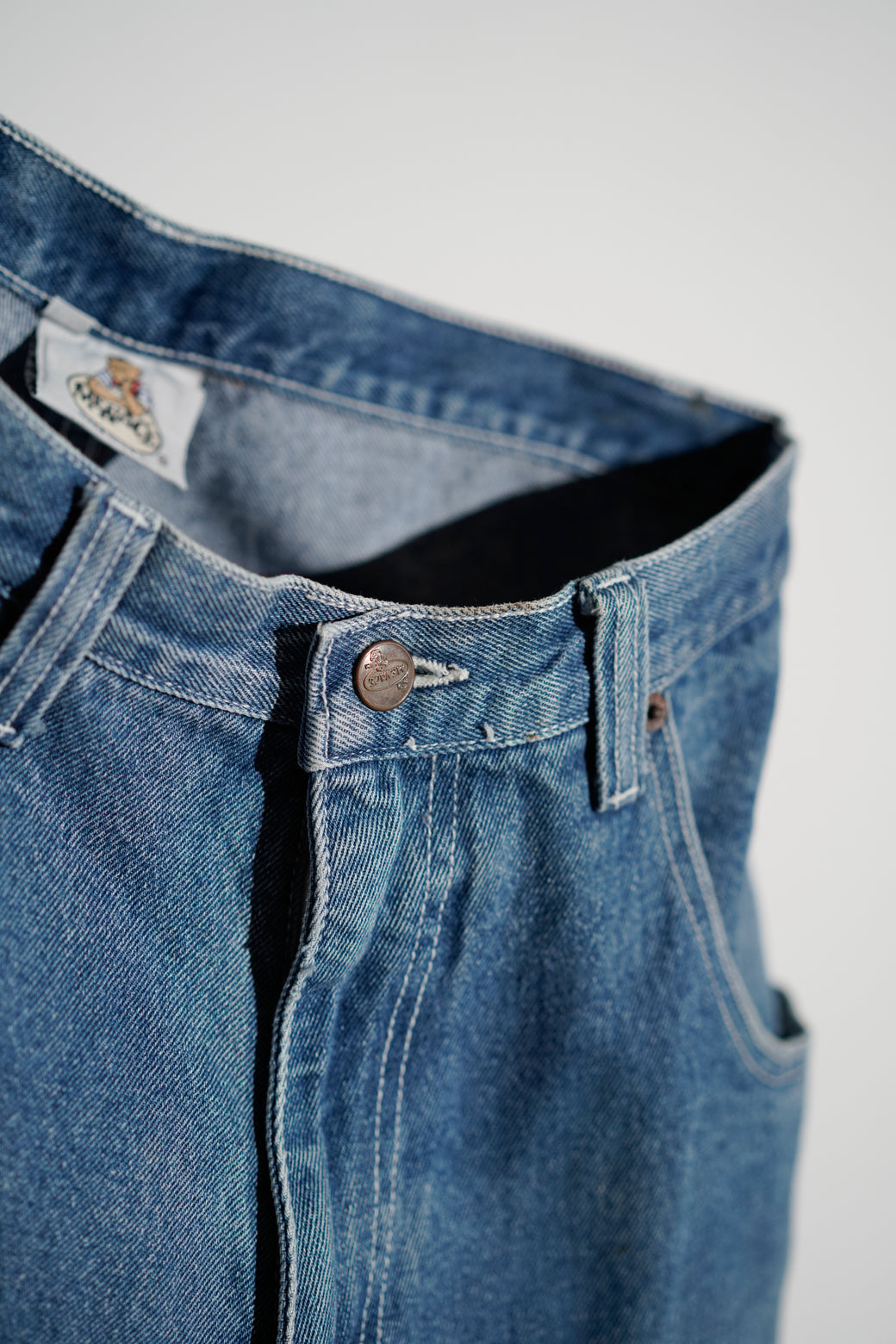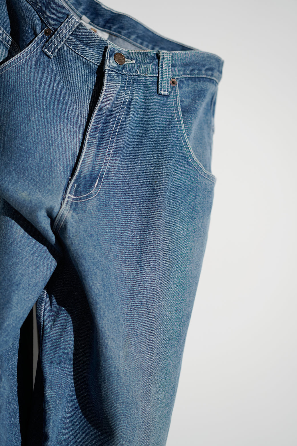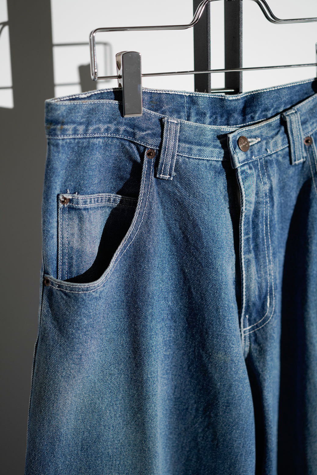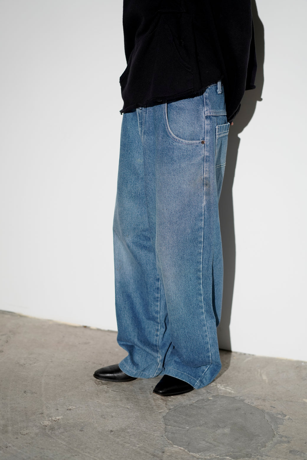 1990-2000年代MENACEのワイドデニム。深めの股上で、ヒップから裾まで直線的に落ちるワイドシルエット。バックには大ぶりなスクエア型パッチポケットが配置されています。MADE IN USA。経年による適切な風合いを伴った良好なコンディション。