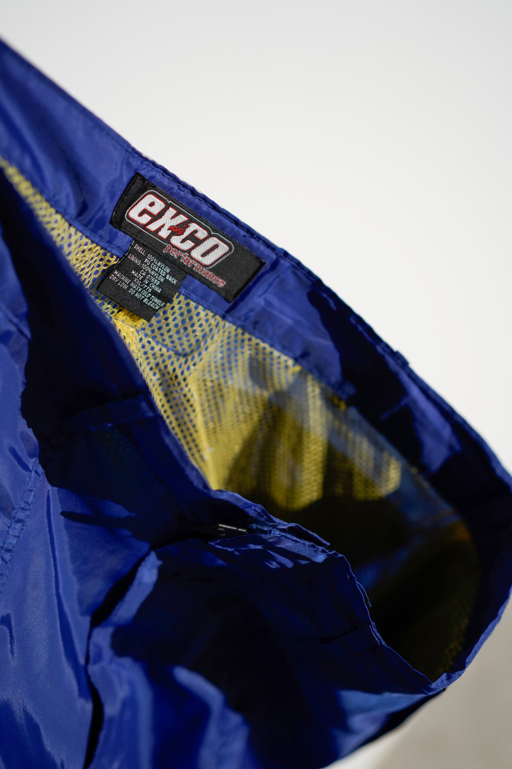 2000年代の"EXCO"のテックナイロンパンツ。ボリューム感と光沢感のあるナイロン素材で細かなギミックとディテール、サイバーなバックパッチがY2K期らしいアーカイブ。経年による適切な風合いを伴った良好なコンディション。