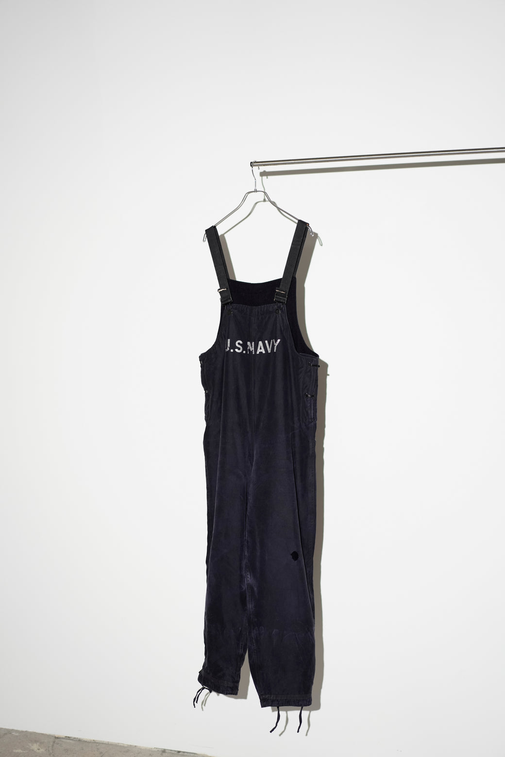 This is a pair of “U.S. NAVY” overalls from the 1960s and later. Featuring a well-balanced overall fade and the front “U.S. NAVY” stencil, it's an archive piece with great character. Made from cotton twill with a thick wool lining. It's in good condition with appropriate aging and patina.