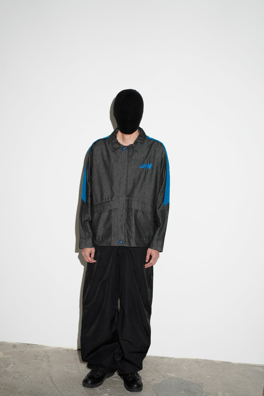 This is a work jacket from the French transport company “Transports Alloin” in the 2000s. The body is made by Aimée Julien in denim-like cotton twill. The front closure features a blue zip-up slider and snap buttons. The blue contrast line running from the shoulder to the sleeve and the pocket shape showcase the distinctive design aesthetic characteristic of French workwear archives. It is in good condition with an appropriate aged patina.