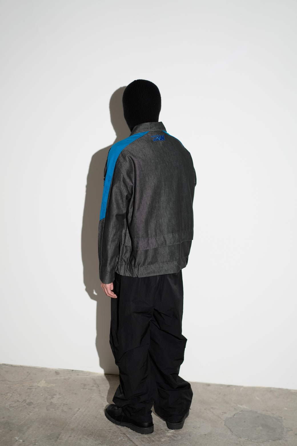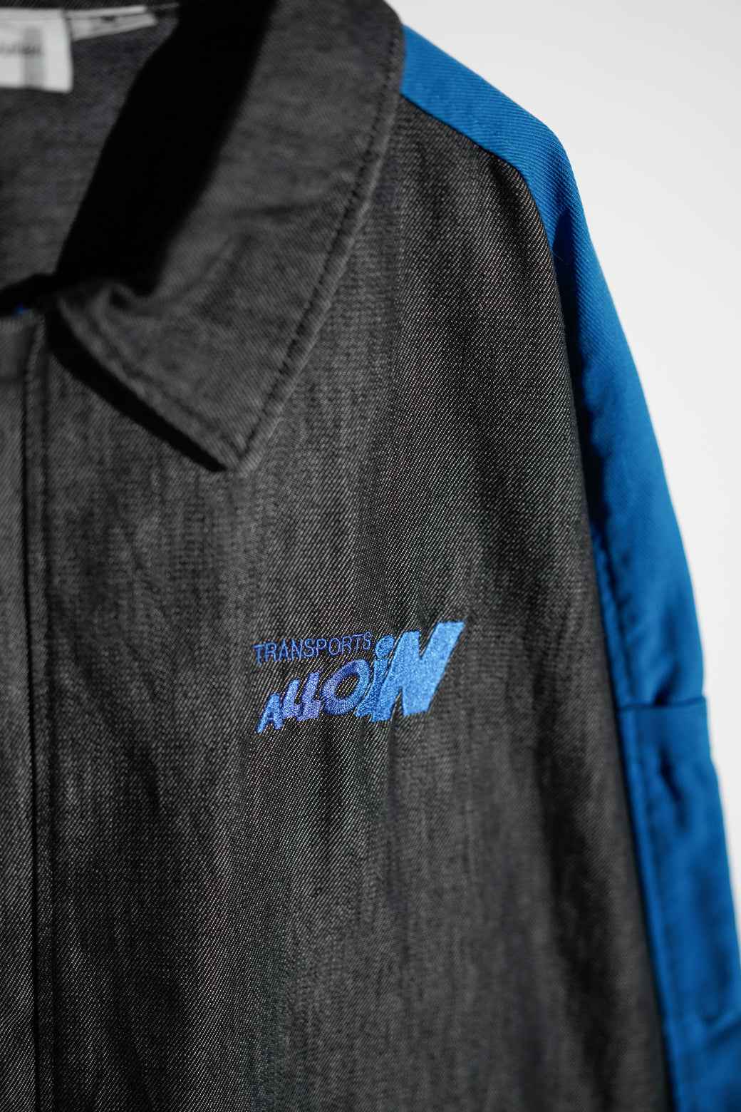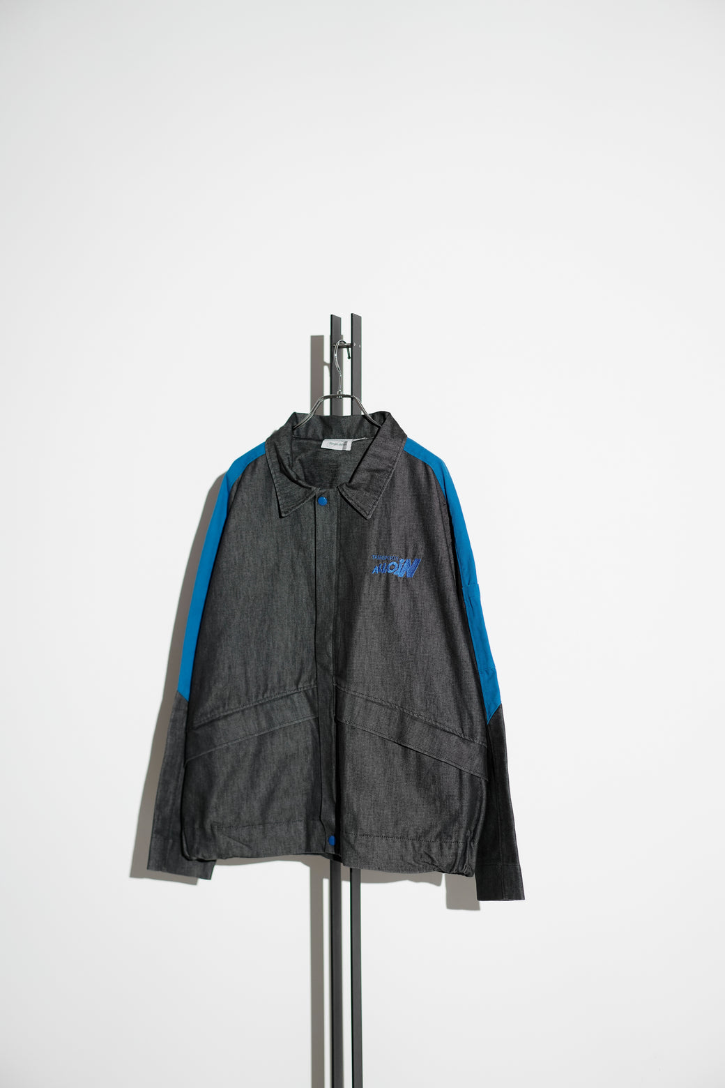 2000年代初頭のフランスの運送会社「Transports ALLION」のワークジャケット。ボディは "Aimée Julien"社製でデニム調のコットンツイル。フロントの開閉はブルーのジップアップスライダーとスナップボタン仕様。肩から袖に走るブルーの切替ライン、ポケットの形状はフレンチ・ワークウェア特有のデザイン性が高いアーカイブ。経年による適切な風合いを伴った良好なコンディション。