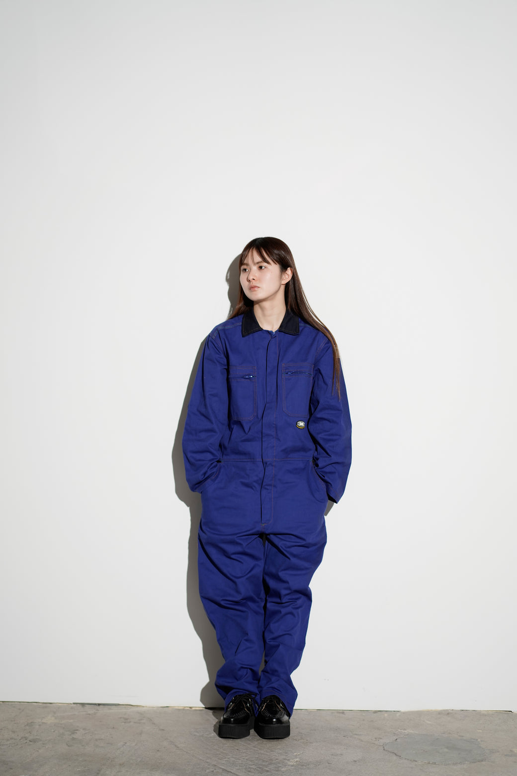 This is a work coverall based on 1990s-2000s EU standards (CE certification). Its structural lines derived from industrial design and integrated silhouette achieve both functionality and form. It is in good condition with appropriate aging characteristics.
