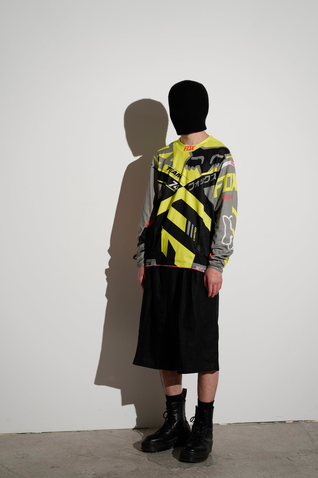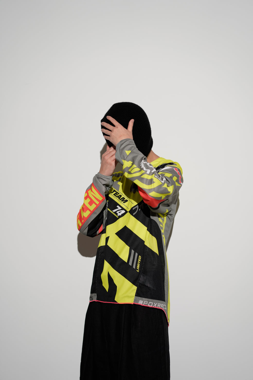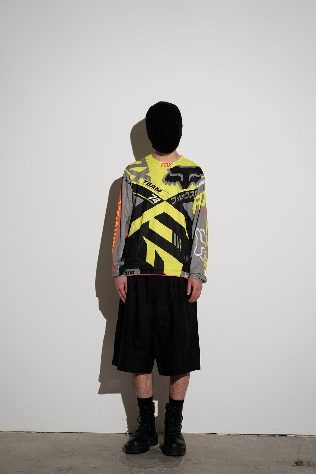 2000年代の"FOX Racing"のモトクロスレーシングジャージ。通気性の高いメッシュ素材を使用した長袖仕様。蛍光イエローを基調とした配色に、多様なグラフィックを全面に配置したデザイン。経年による適切な風合いを伴った良好なコンディション。