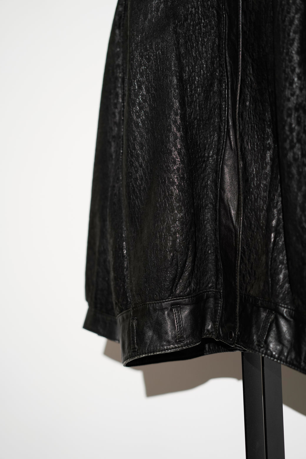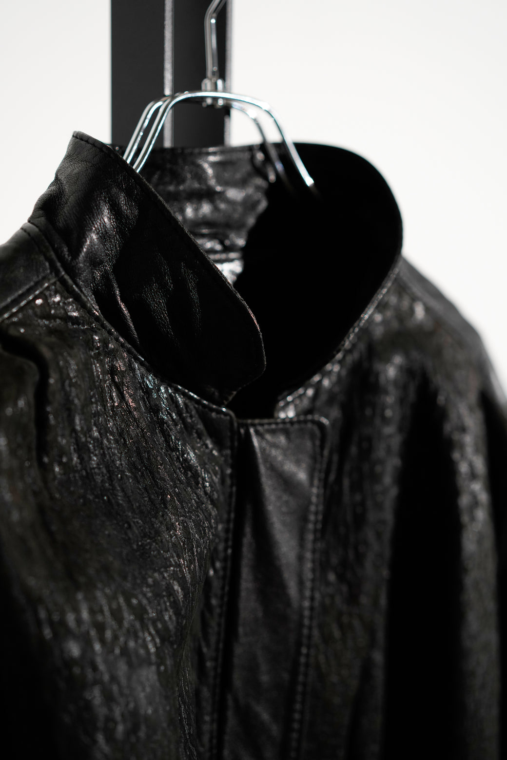 Textured Leather Stand Collar Jacket